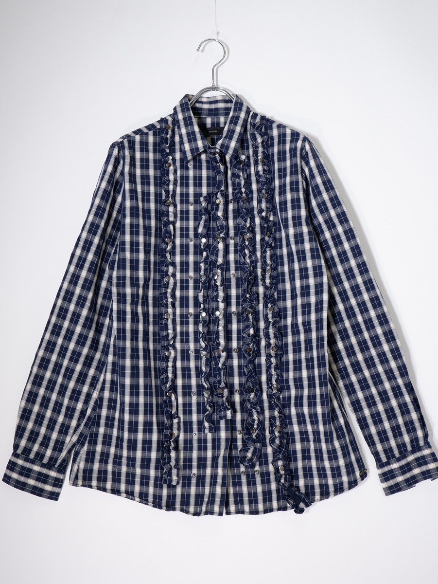 アイテム | レディース フリルスナップ チェックブラウス シャツ |