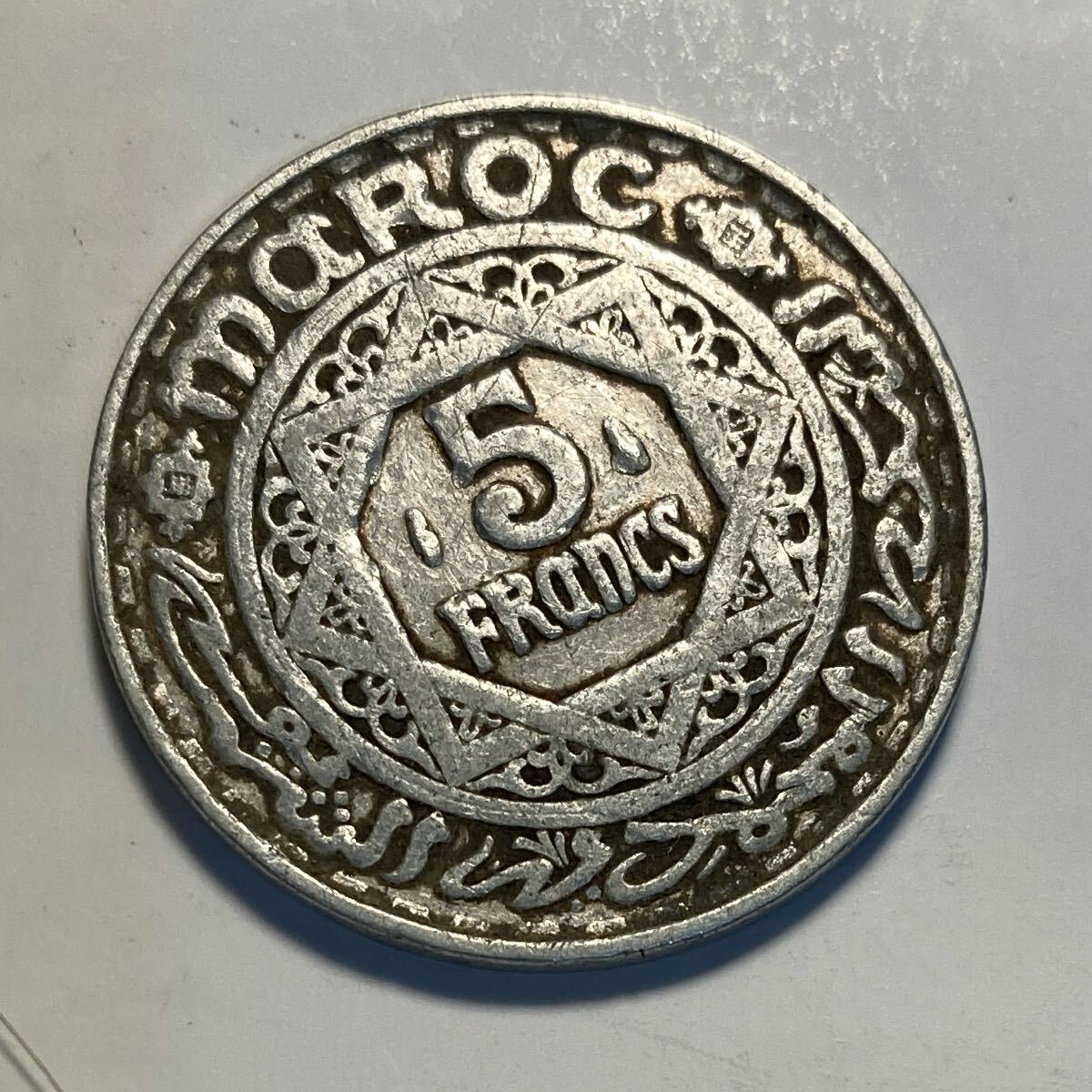 フランス保護領モロッコ時代に発行された5フラン硬貨
