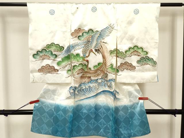 産着【着物:化繊・襦袢:交織・五つ紋】の状態は 接写画像のように着物:上前胸付近に薄い汚れがございますが その他特に目立ったシミ汚れなどもなく大変良い状態です。 お安く出品致しますので、是非この機会にいかがでしょうか? ※袖は大名袖になっております。 ※襦袢は紐の付属がございません。 ※着物は紐が外されています。 |