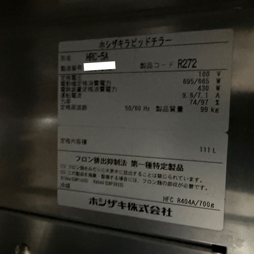 【業界最長1年保証】ラピッドチラー ホシザキ HRC-5A 業務用 中古/送料別途見積