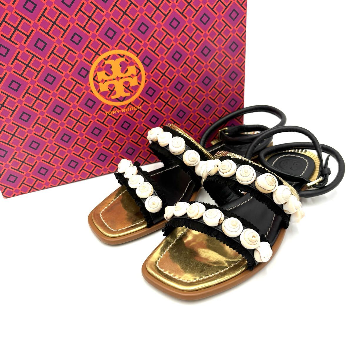 ■ 箱付き '洗練されたデザイン' TORY BURCH トリーバーチ ビジュー装飾 アンクルストラップ サンダル ミュール 6M 23cm 婦人靴 シューズ
