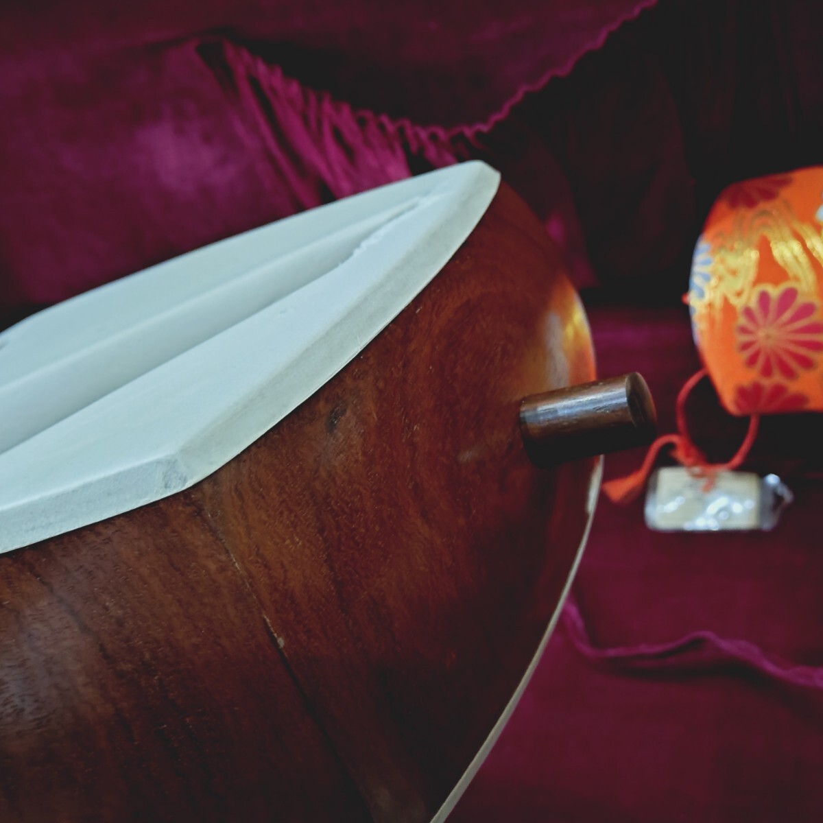 胴の皮に大きな破れがあります(写真をご確認ください)。そのため現状音出し不可・要張替え修理となります。