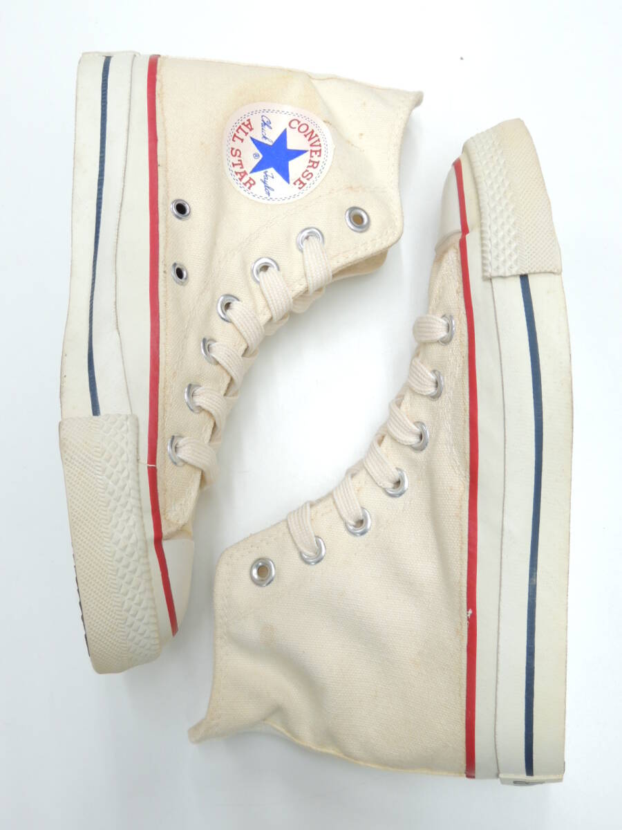 80S VINTAGE デッドストック 新品 US 3 1/2 22.5cm コンバース CONVERSE USA製 当て布 囲みロゴ オールスター ハイ アンブリーチドホワイト