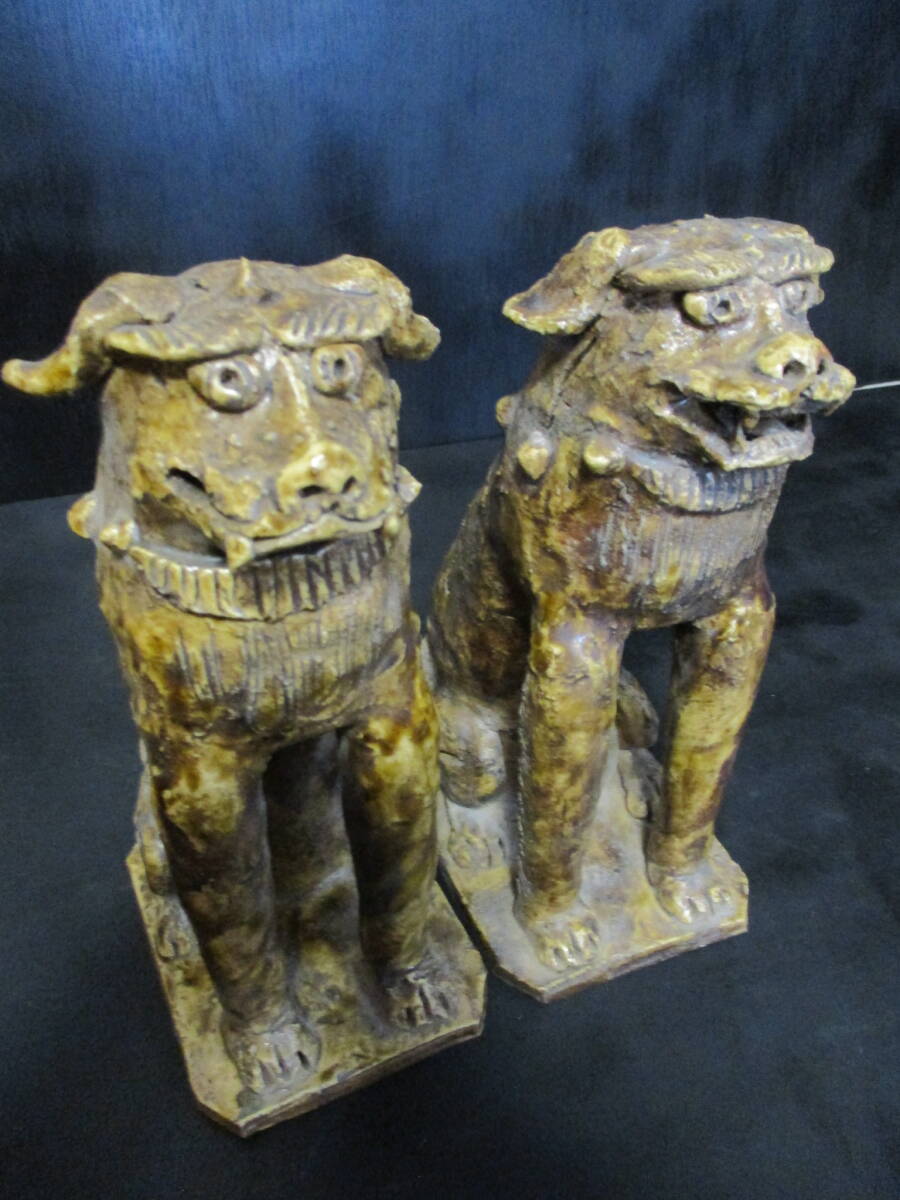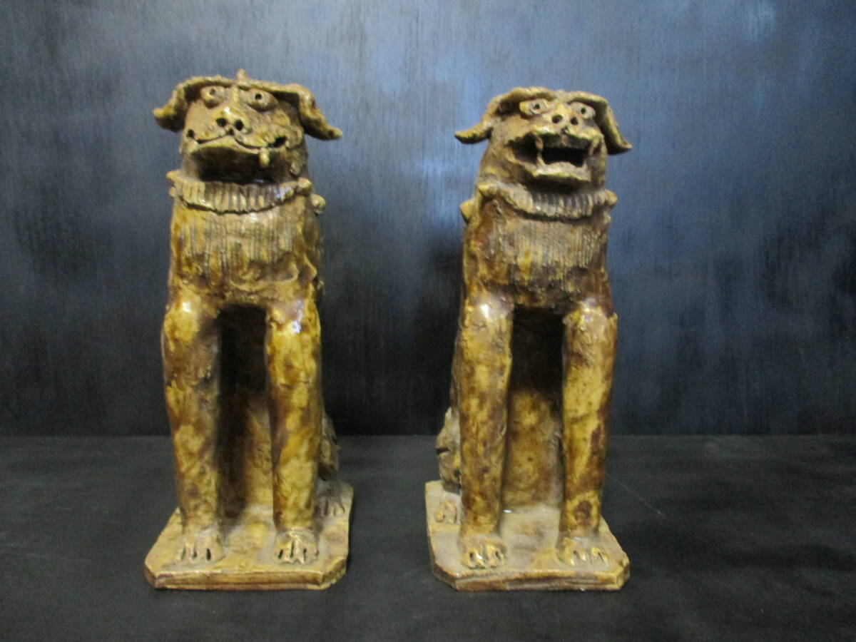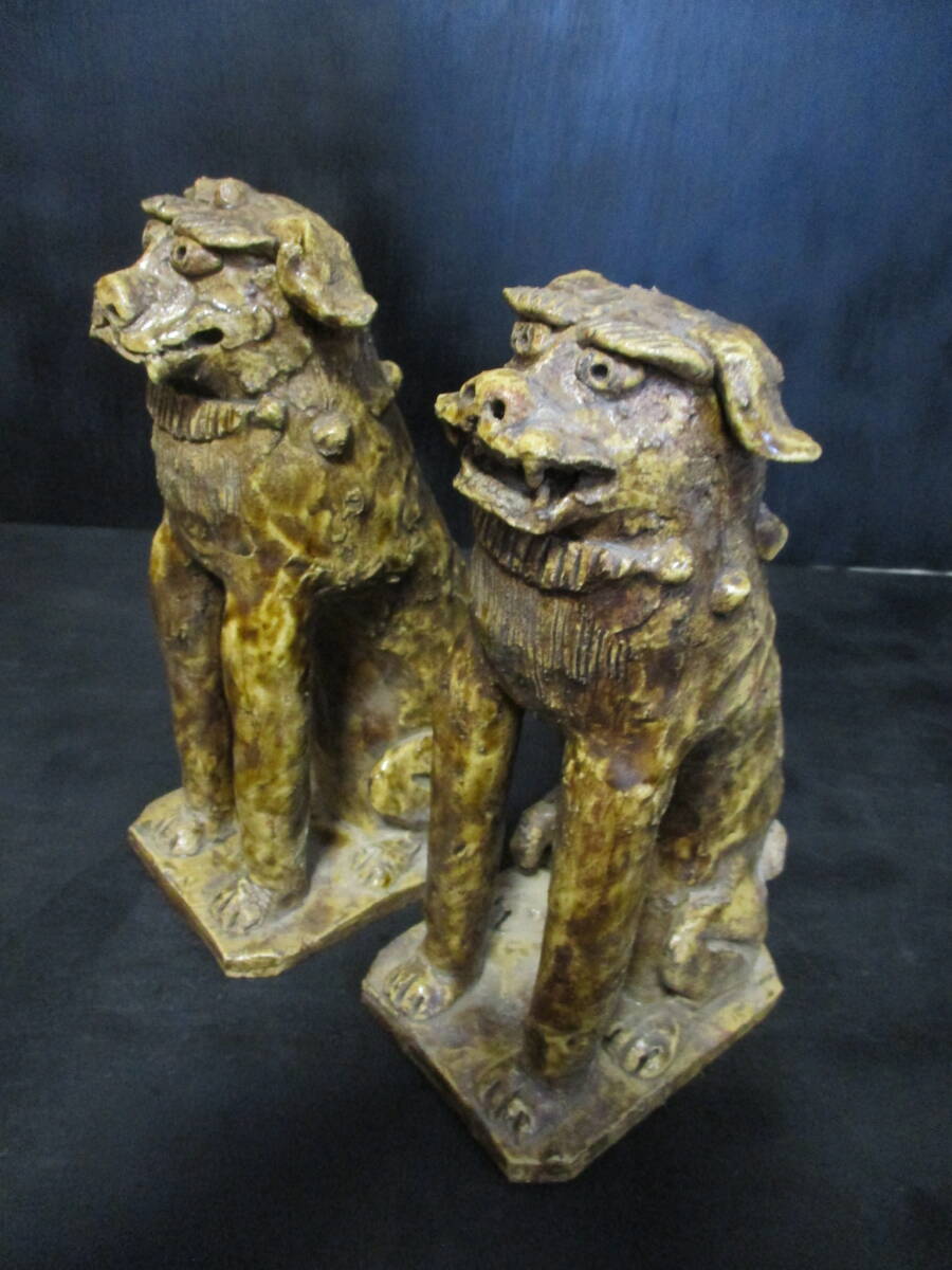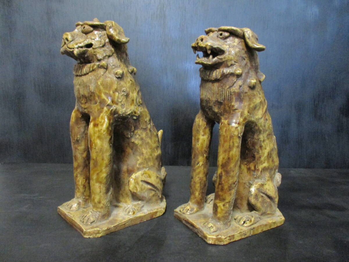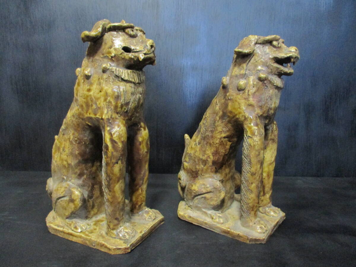 放出品  江戸前期~中期頃  古様式 「瀬戸狛犬」  2匹セット   良品  稀品  教授所持  で御座います。。