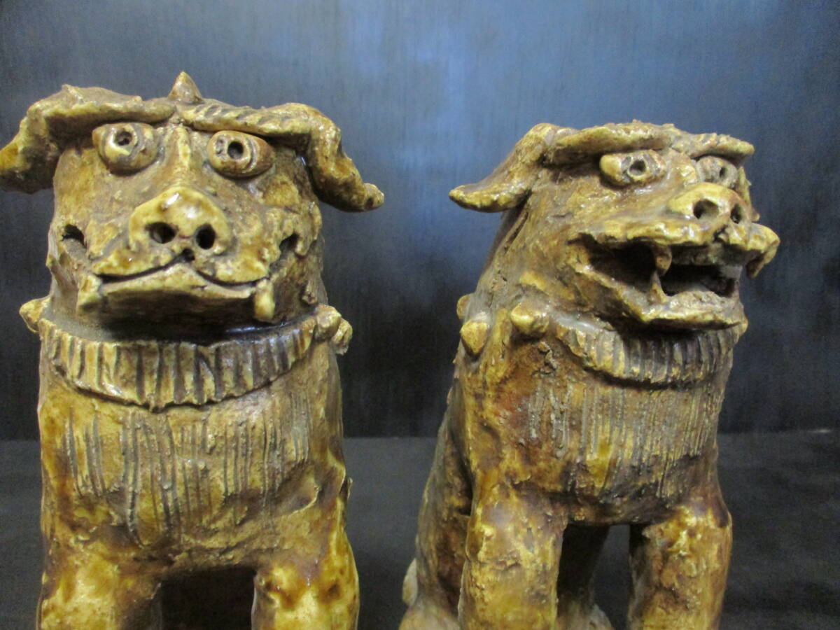 K-12.  放出品  江戸前期~中期頃  古様式 「瀬戸狛犬」  2匹セット   良品  稀品  教授所持品