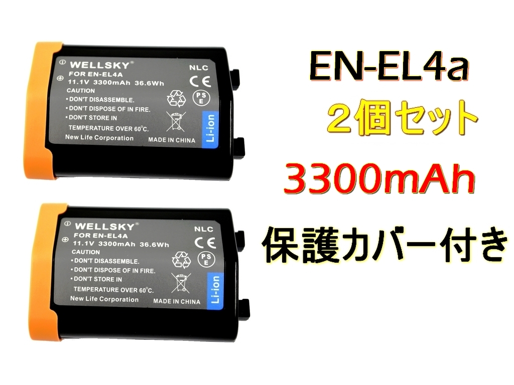 EN-EL4a [新品] EN-EL4 [2個セット] 互換バッテリー 純正品と同じよう使用可能 純正充電器で充電可能 残量表示可能 Nikon ニコン D3X D3S