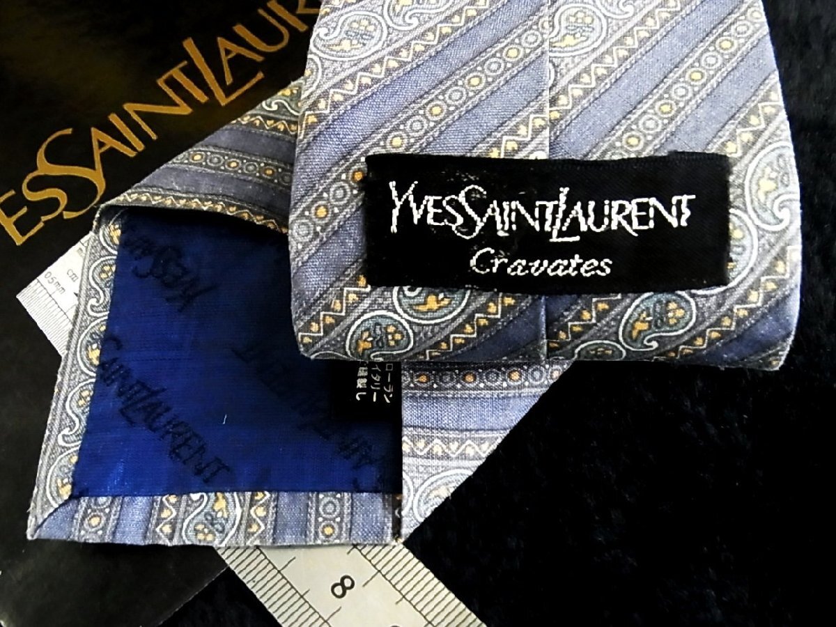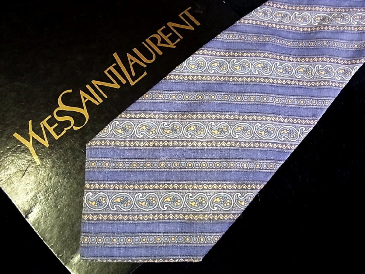 ♪今週の特売980円~♪2829♪状態並品【YSL】サンローラン【ペイズリー ストライプ 柄】ネクタイ♪