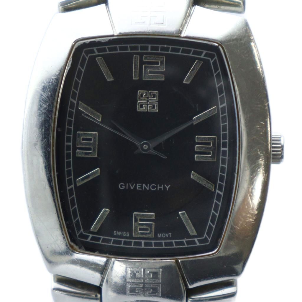 ジバンシィ GIVENCHY ジャンク品 腕時計 ウォッチ クォーツ ロゴ 黒文字盤 シルバー色 PB.17.IV ■GY18 /MQ メンズ