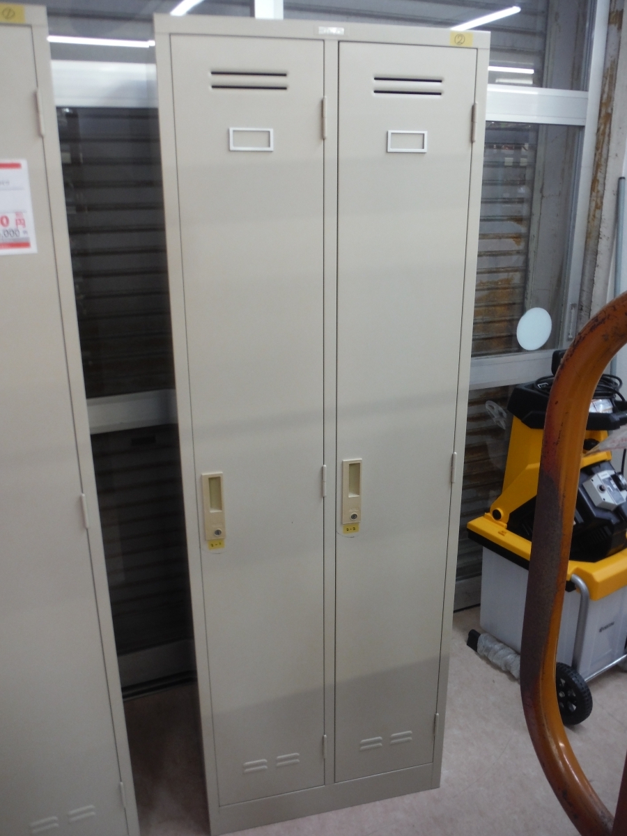 オーソドックスな事務所に設置する2人用のスチールロッカーです。使用に伴うスレはありますが