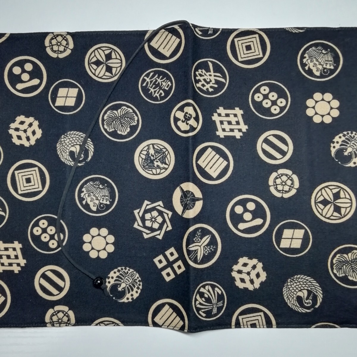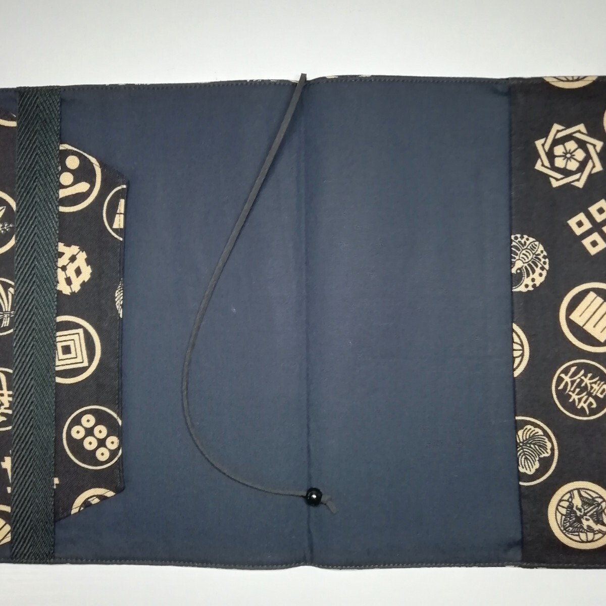 こちらはハンドメイドのブックカバーです。サイズはA5判(14.8cm ×21cm)用で、広げた状態で、縦約22、横約41です。