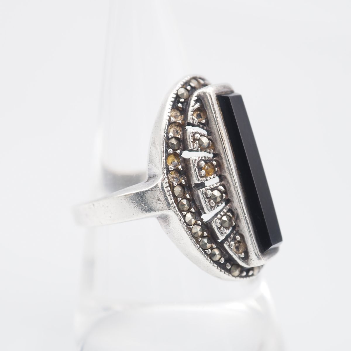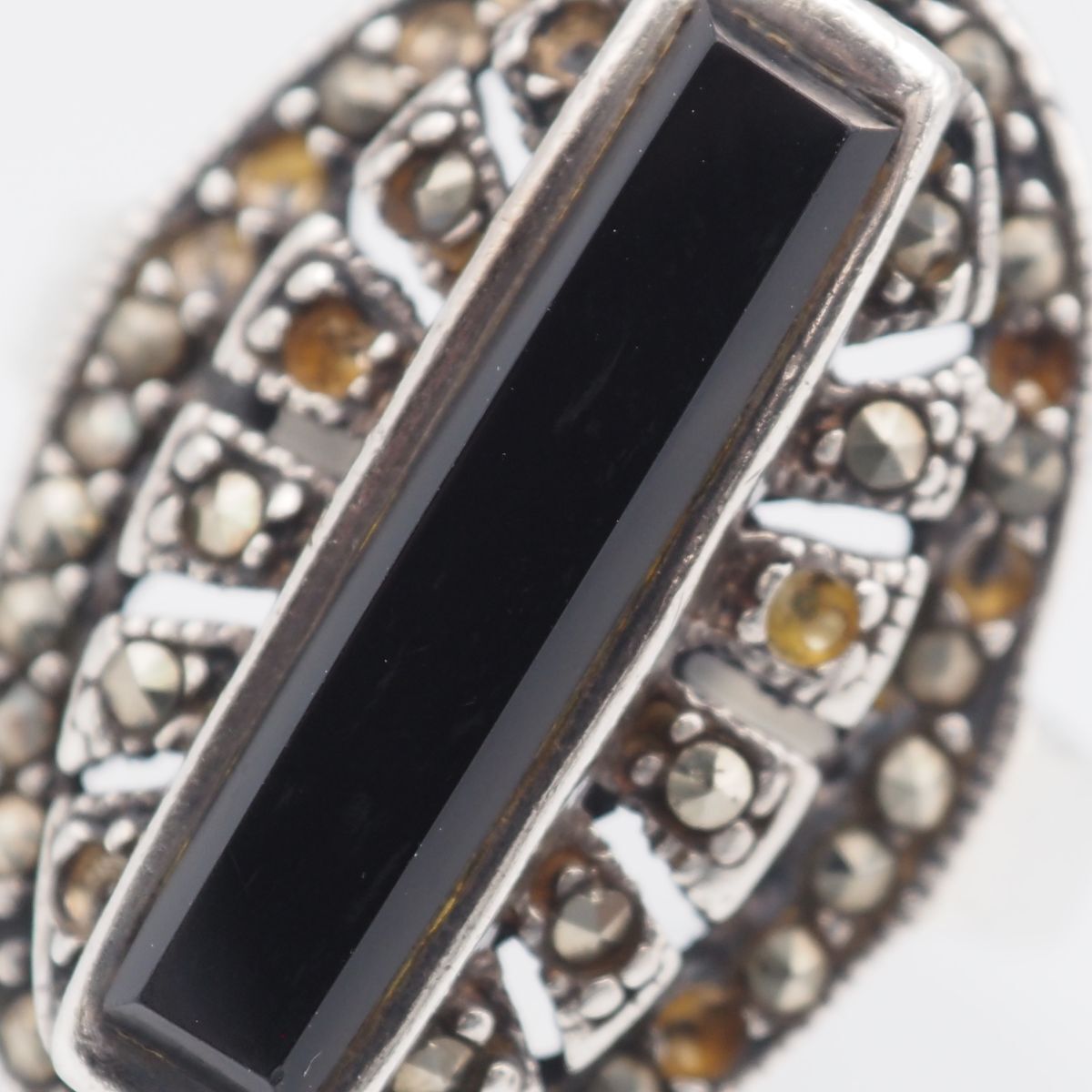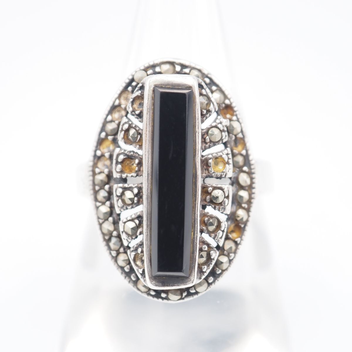 F335 オニキス マーカサイト マルカジット リング デザイン シルバー 指輪 18号