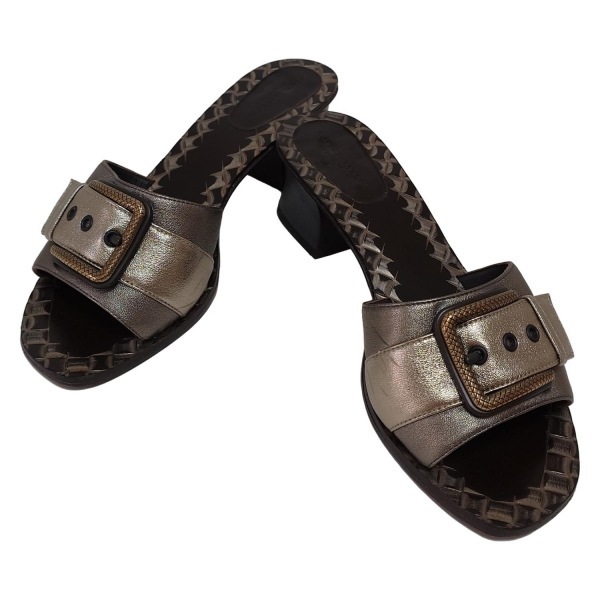 ボッテガヴェネタ BOTTEGA VENETA ミュール 37 1/2 - レザー ダークゴールド×ゴールド×ダークブラウン レディース 靴