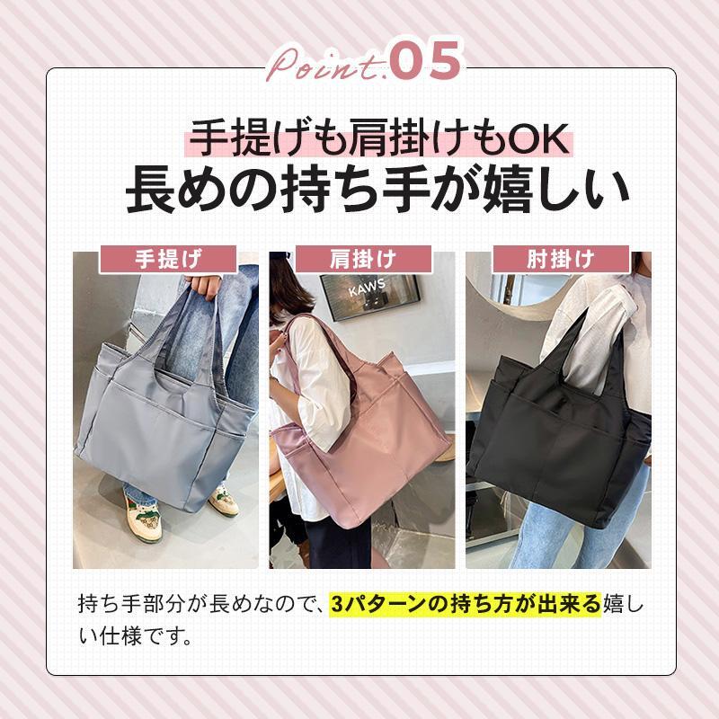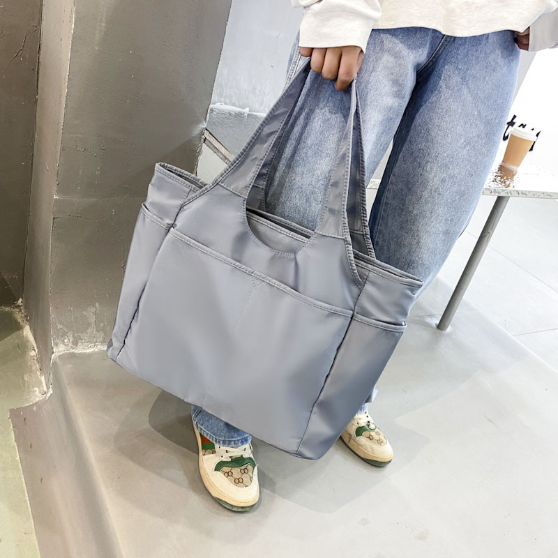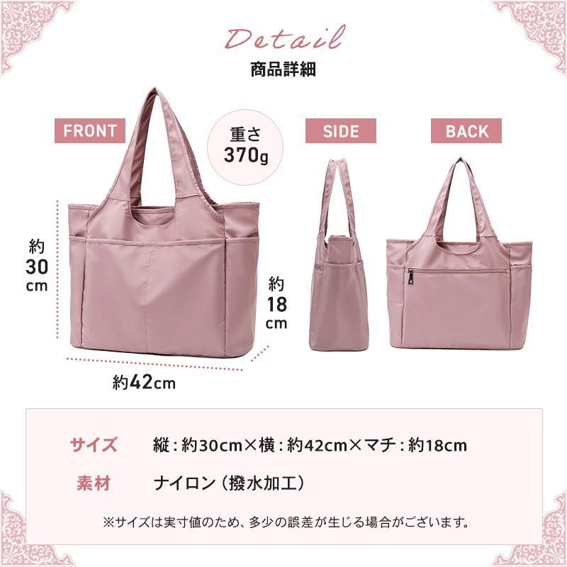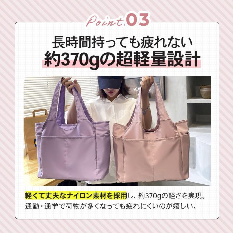 トートバッグ レディース 大きめ A4 軽い ポケット多い ナイロン 通勤 撥水 小物入れ シンプル JHB0027 ブルーグレー