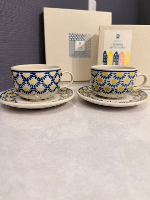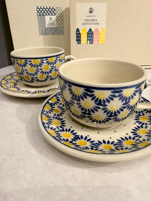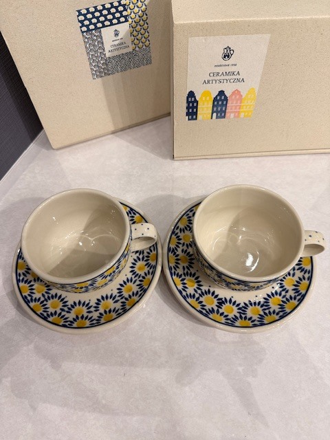 | H7-9-44 ツェラミカ ポーリッシュポタリー デイジー カップ&ソーサー ポーランド食器 ペア 箱あり | |||