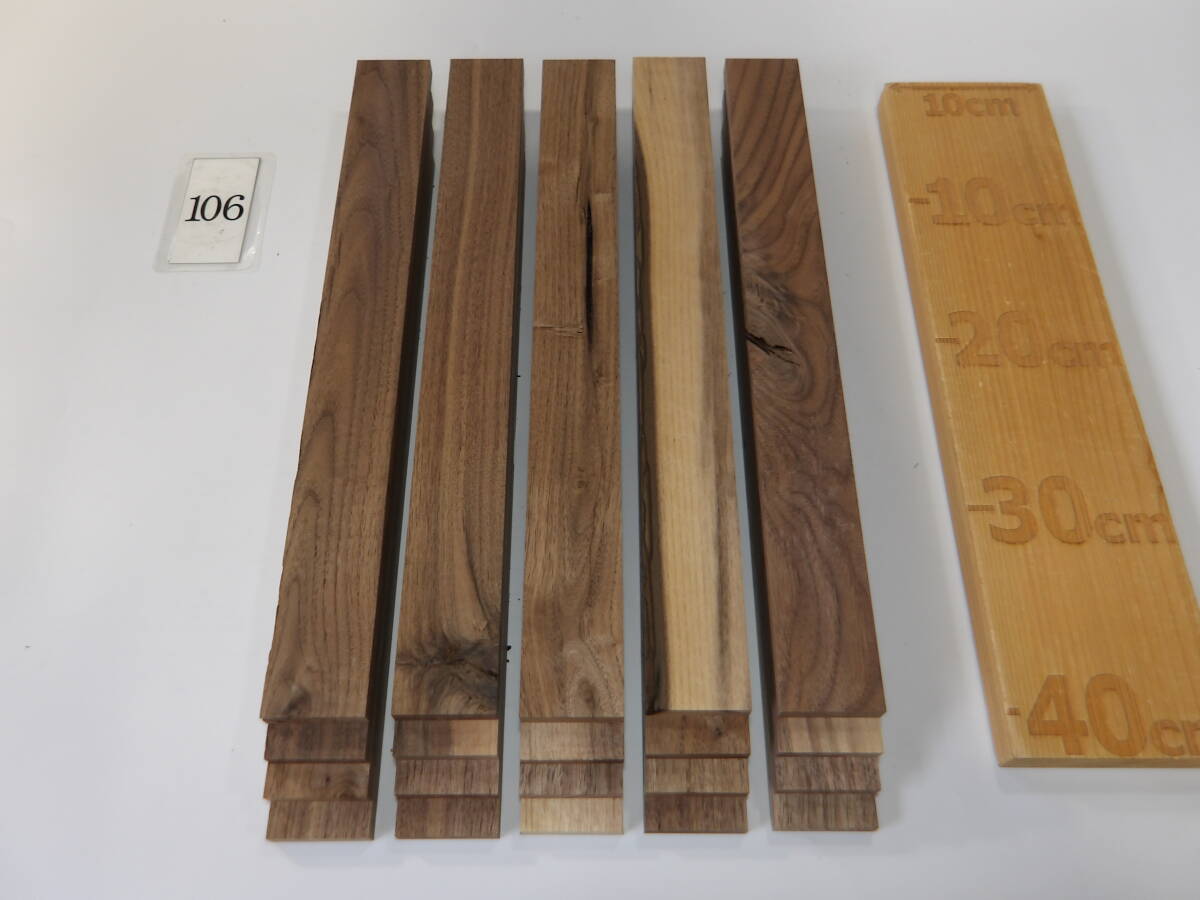 【B様】 ウォールナットの薄板 厚み約15×幅約45×長さ600mm = 100本