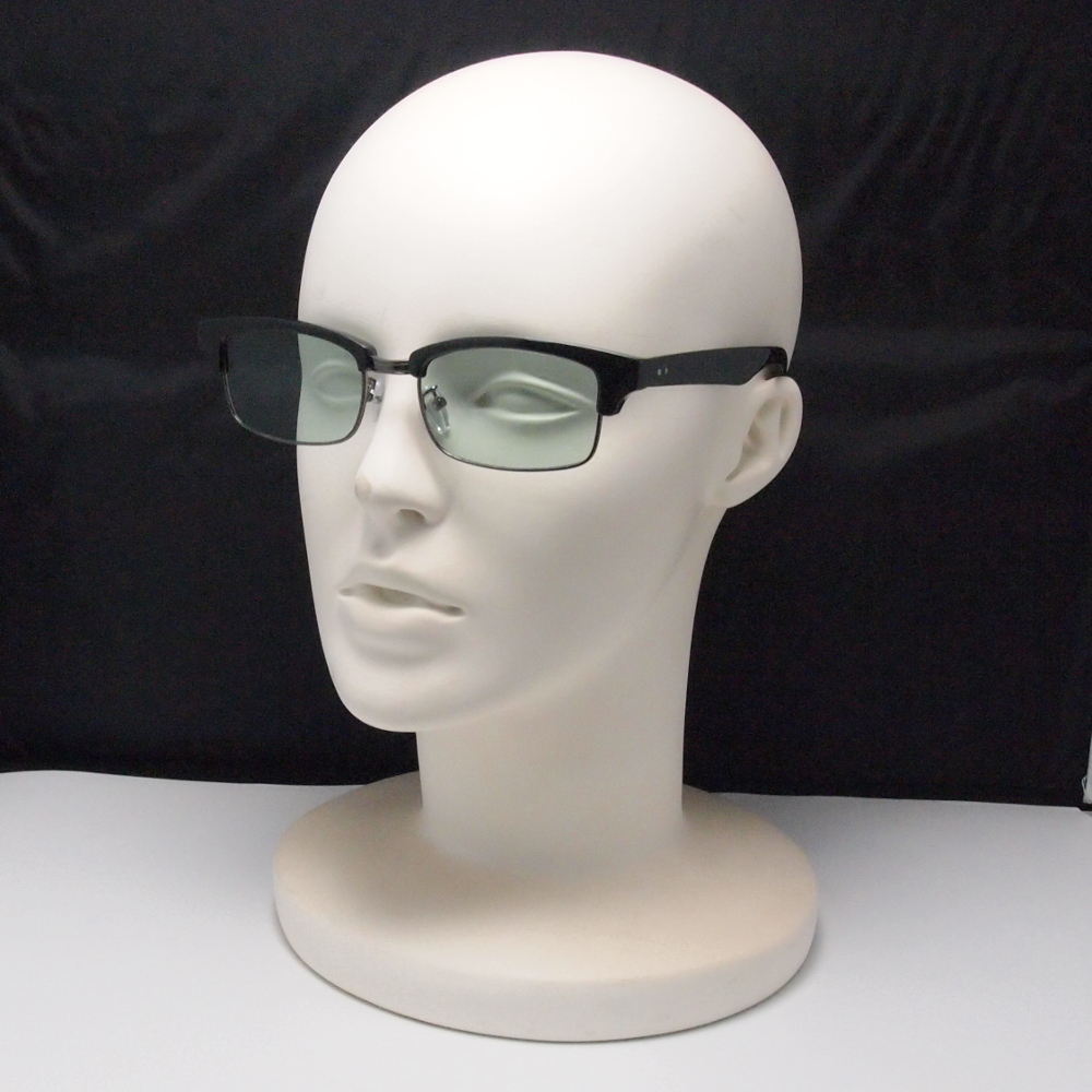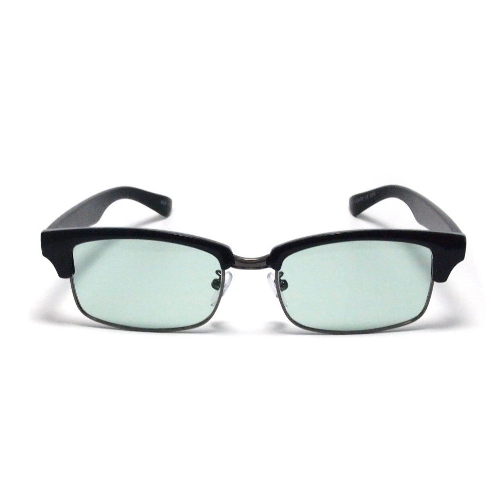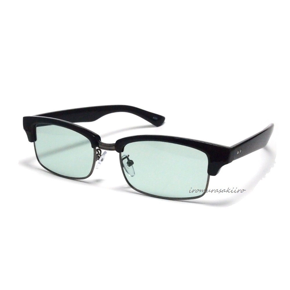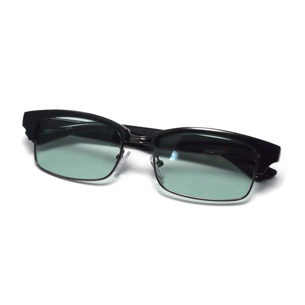 レトロおしゃれ ブロー型フレーム サングラス グリーンレンズ メンズ 新品 黒ぶち /緑 ブラック 紫外線カット 薄い色 目が透ける 25032GR