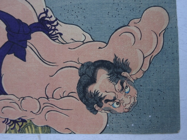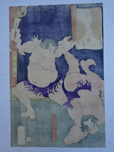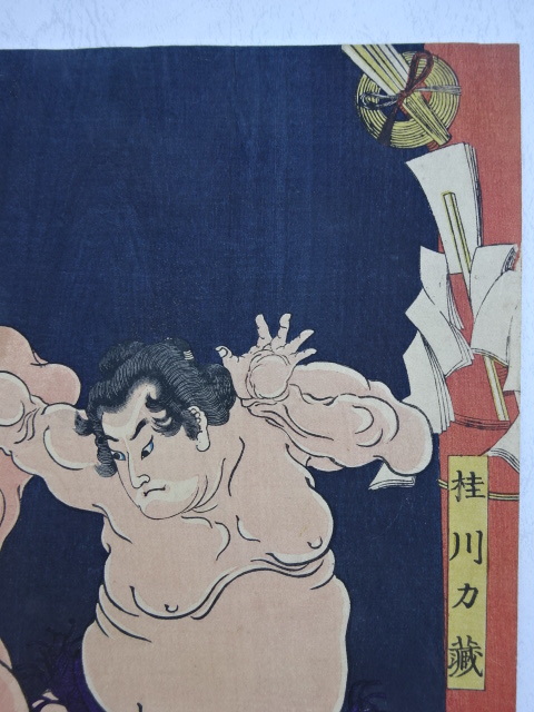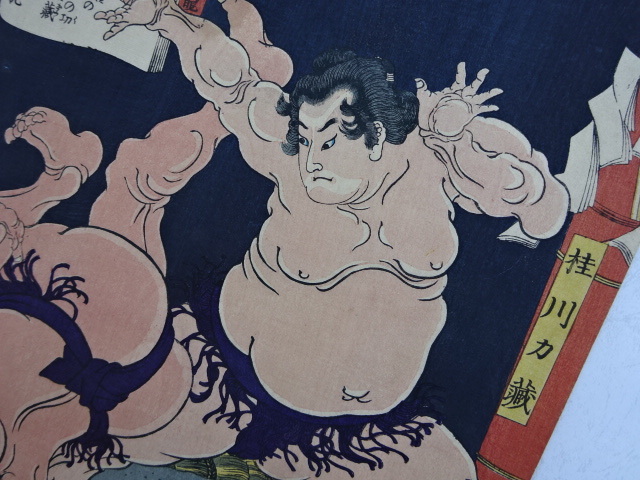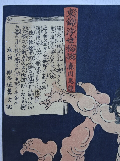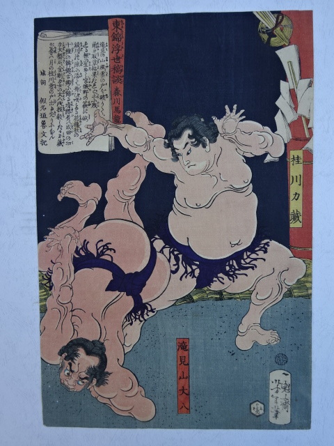 浮世絵 月岡芳年 真作 浮世絵師 (歌川国芳門下生) 東錦浮世稿談 森川馬龍『 滝見山 大八 桂川力蔵 』相撲 力士 版画