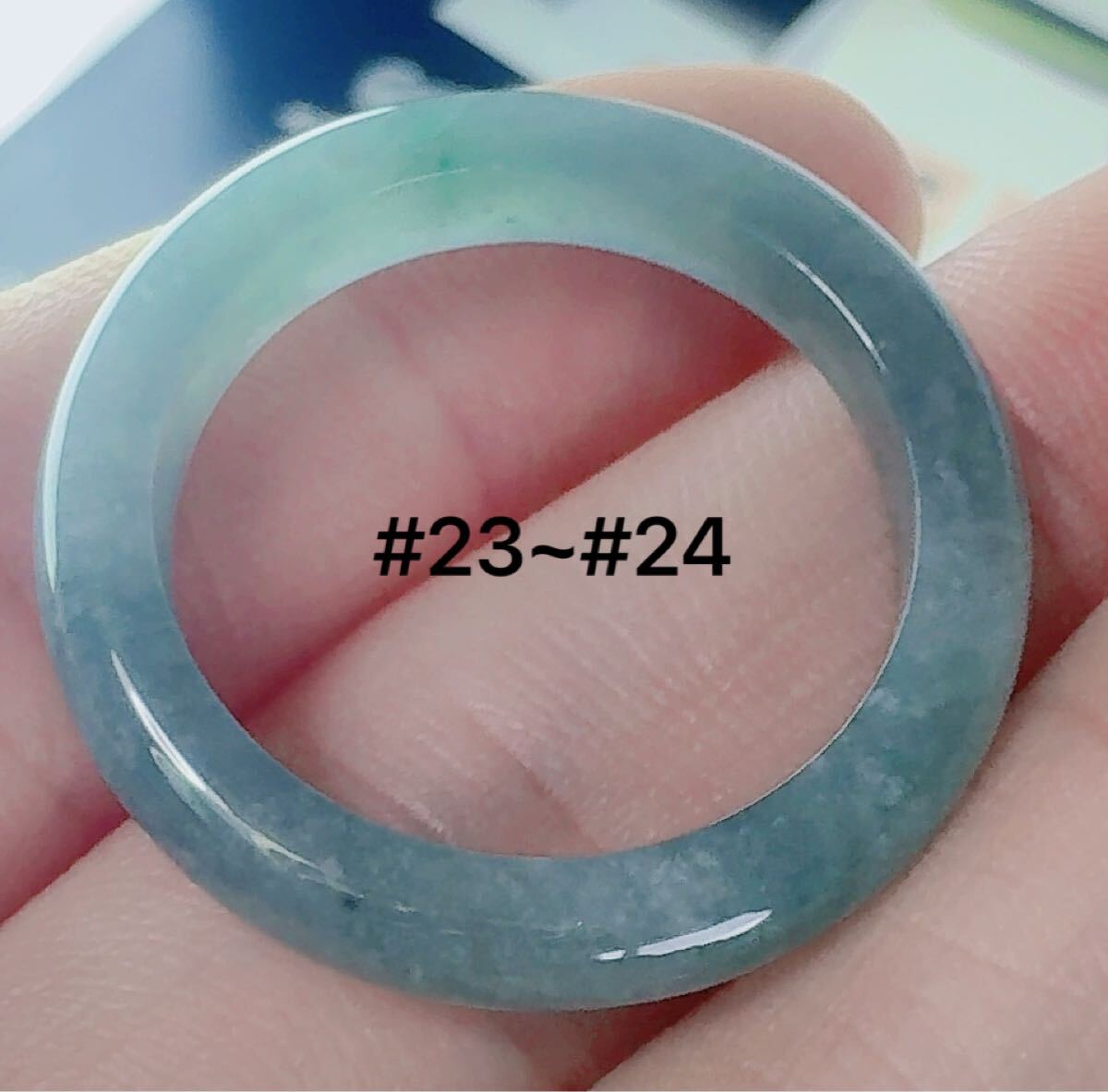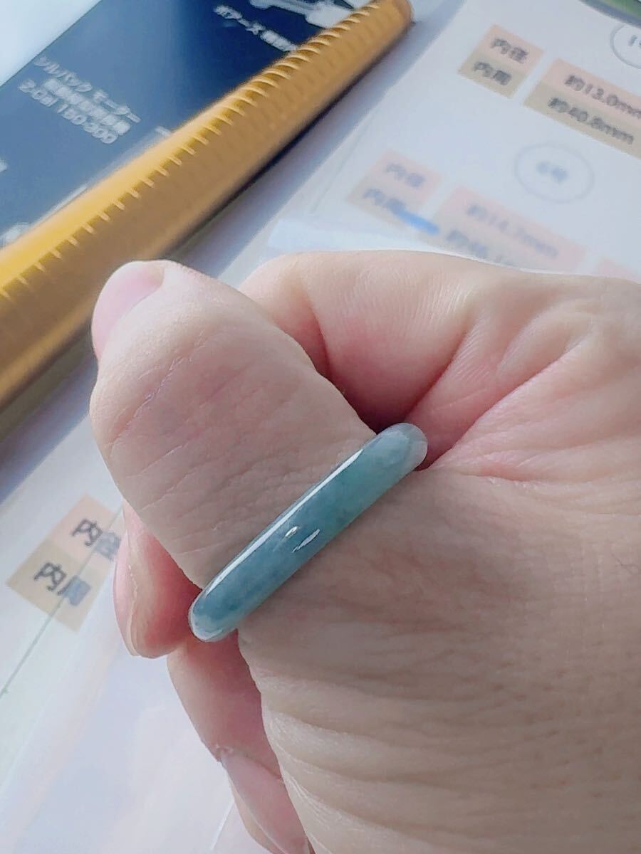 R2-02188天然本翡翠《本物保証》 藍水翡翠 指輪約23~24号 一点物 希少 縁起物 お守り 魔除け 昇進 成功 風水 金運 財運 幸運 幸福