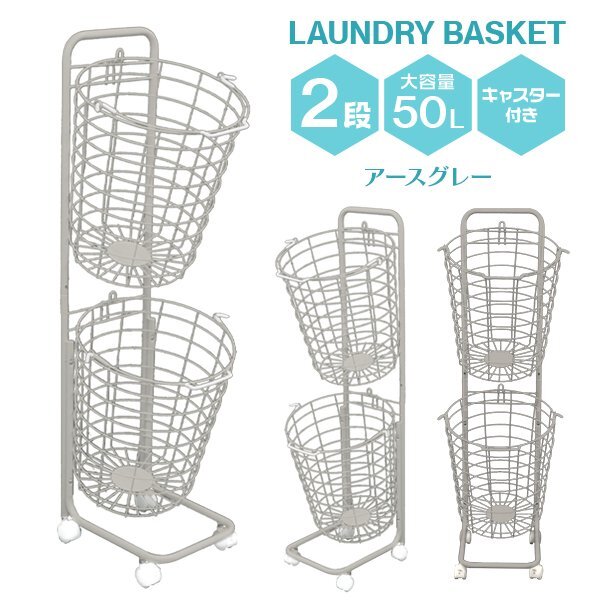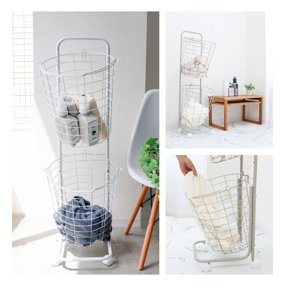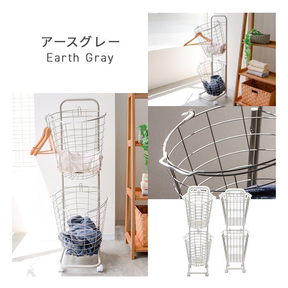 通常のバスケットを分別用に2つ並べて置くと幅を取り、上部にデッドスペースが生まれてしまいます。 こちらの商品は幅約35cmに2つのバスケットを縦に並べることが可能。 デッドスペースを活用することで物が多くなりがちな洗濯機まわりも無駄なくすっきり。 狭くなりがちなスペースを有効に活用することができます。 2つのバスケットは取り外しも可能で、持ち手があるのでベランダに運ぶ時なども便利にお使いいただけます。 キャスター付きで、ラックごとの移動もスムーズです。 ランドリー以外にキッチンの食品ストッカー、リビングの雑貨入れ、おもちゃ収納も使えます! 【商品仕様】 カラー:アースグレー サイズ:(約)幅35×奥行き40×高さ107cm バスケット内寸:(約)直径28(底部)×高さ37cm 重量:(約)3kg 容量:(約)50L(上段25L、下段25L) バスケット耐荷重:(約)10kg 素材:スチール、ナイロン ランドリーバスケット 2段 3段 1段 大容量 ワイヤーバスケット ランドリーラック 洗濯物入れ かご 洗濯かご 洗濯物 脱衣かご ランドリー収納 ランドリーボックス 洋服 衣服 収納 おもちゃ収納 雑貨入れ おしゃれ シンプル 北欧 西海岸 人気 おすすめ WEIMALL |