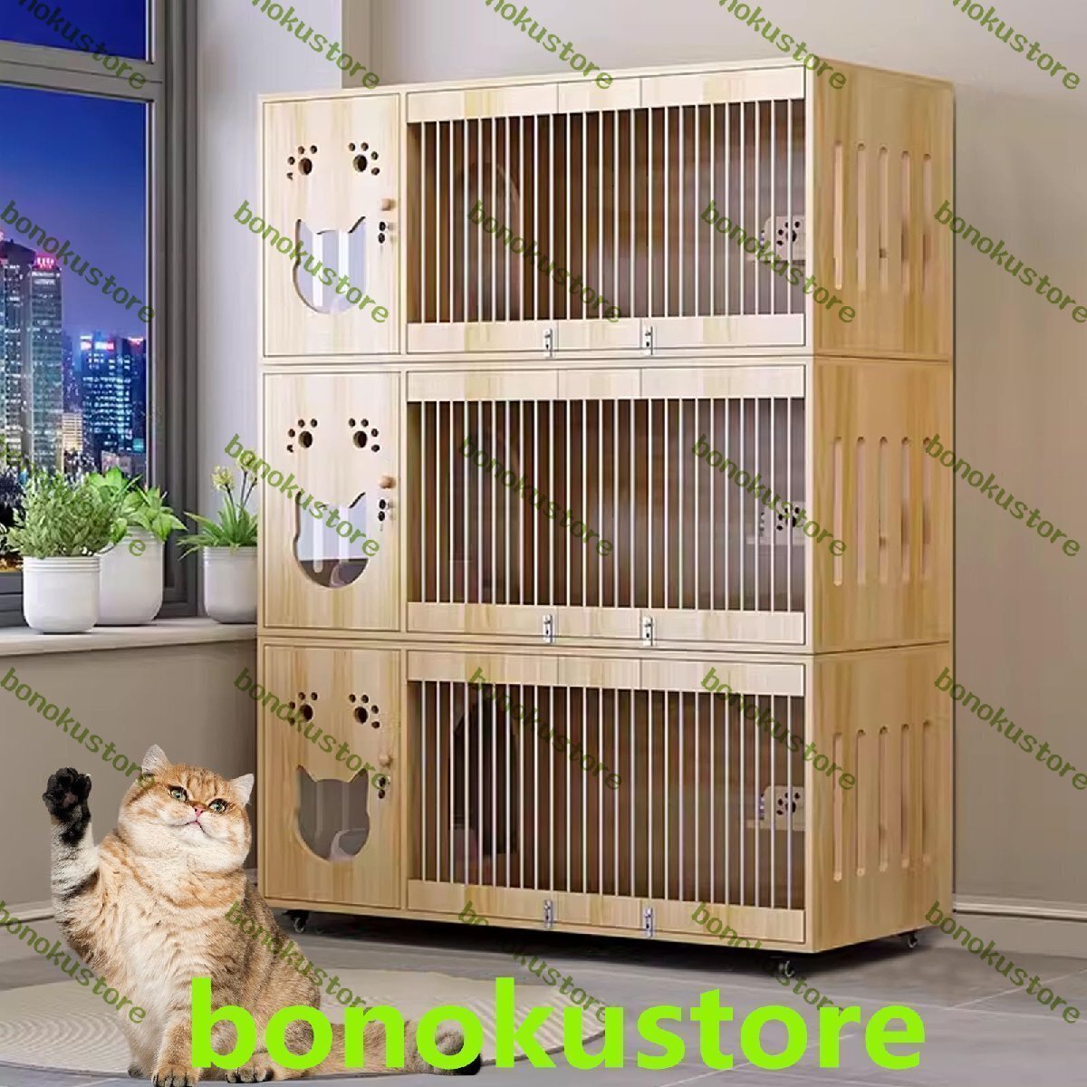 【自由な動き】猫 ケージ 木製 の底には 4 つのユニバーサルホイールが装備されており、移動に便利です。(2 つのホイールはブレーキ付き) ??【優れた通気性】キャットケージ 木製 は中空設計で、内部を通気性と乾燥に保ち、猫にとって快適な空間を作り出します。 ??【ロック設