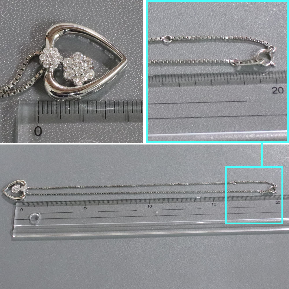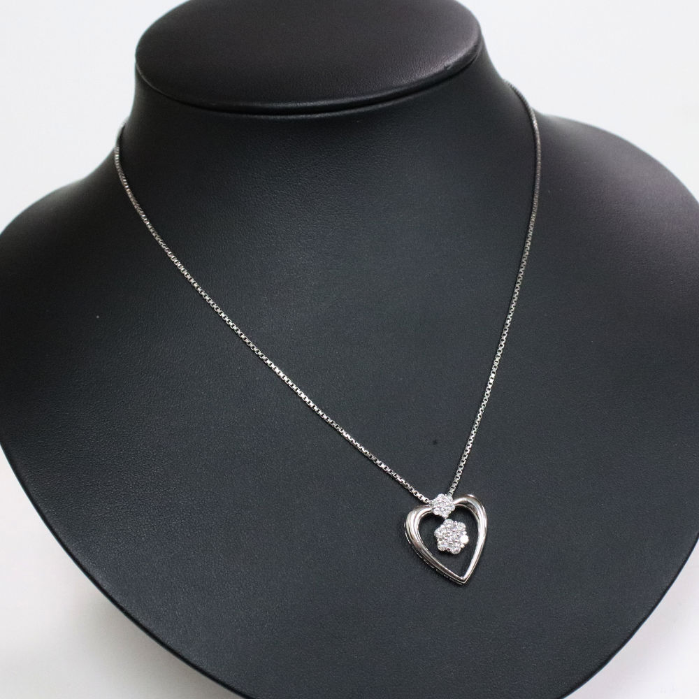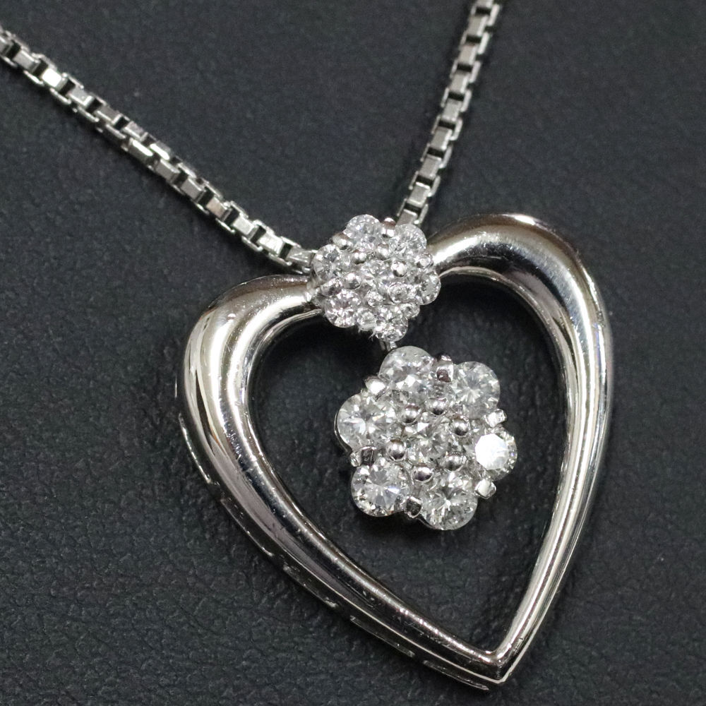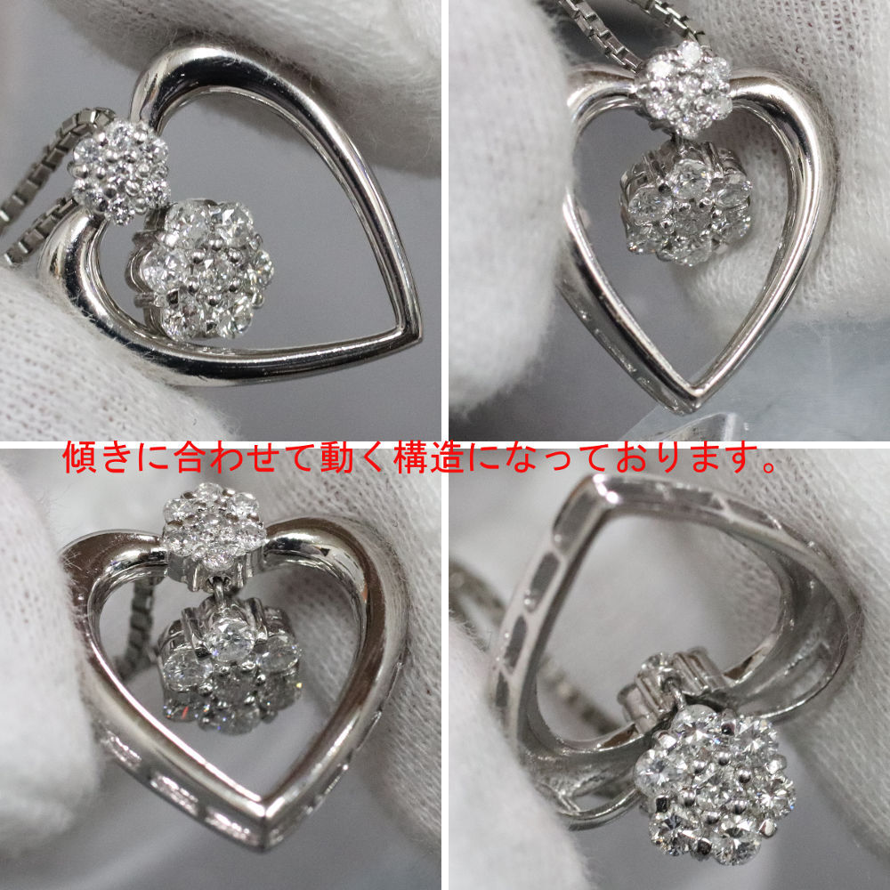 Pt900/850ダイヤモンドペンダントの中古品です。 ハートの可愛らしいペンダントです。 ダイヤモンドはインクルージョンが多くあります。 プラチナに使用による細かな傷があります。