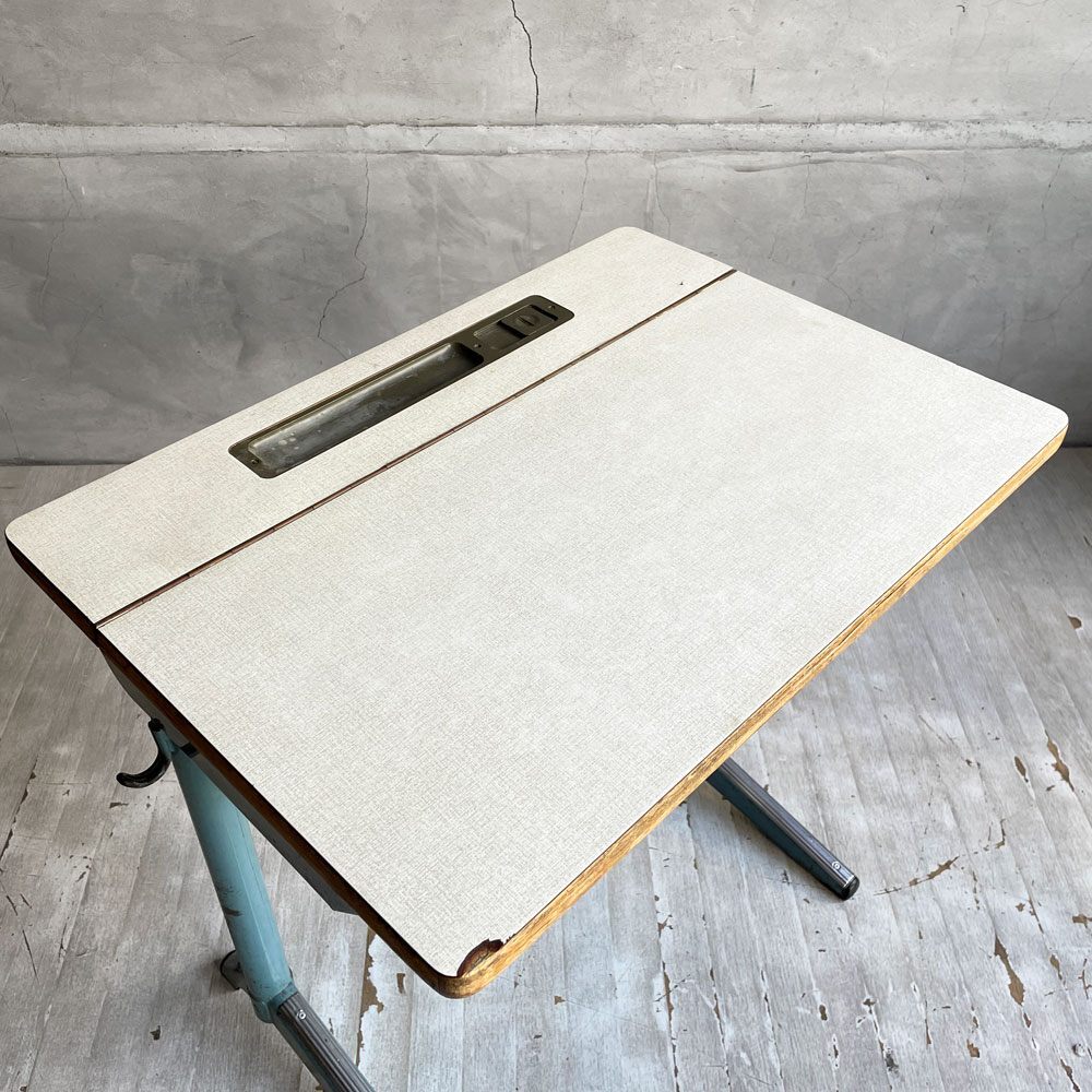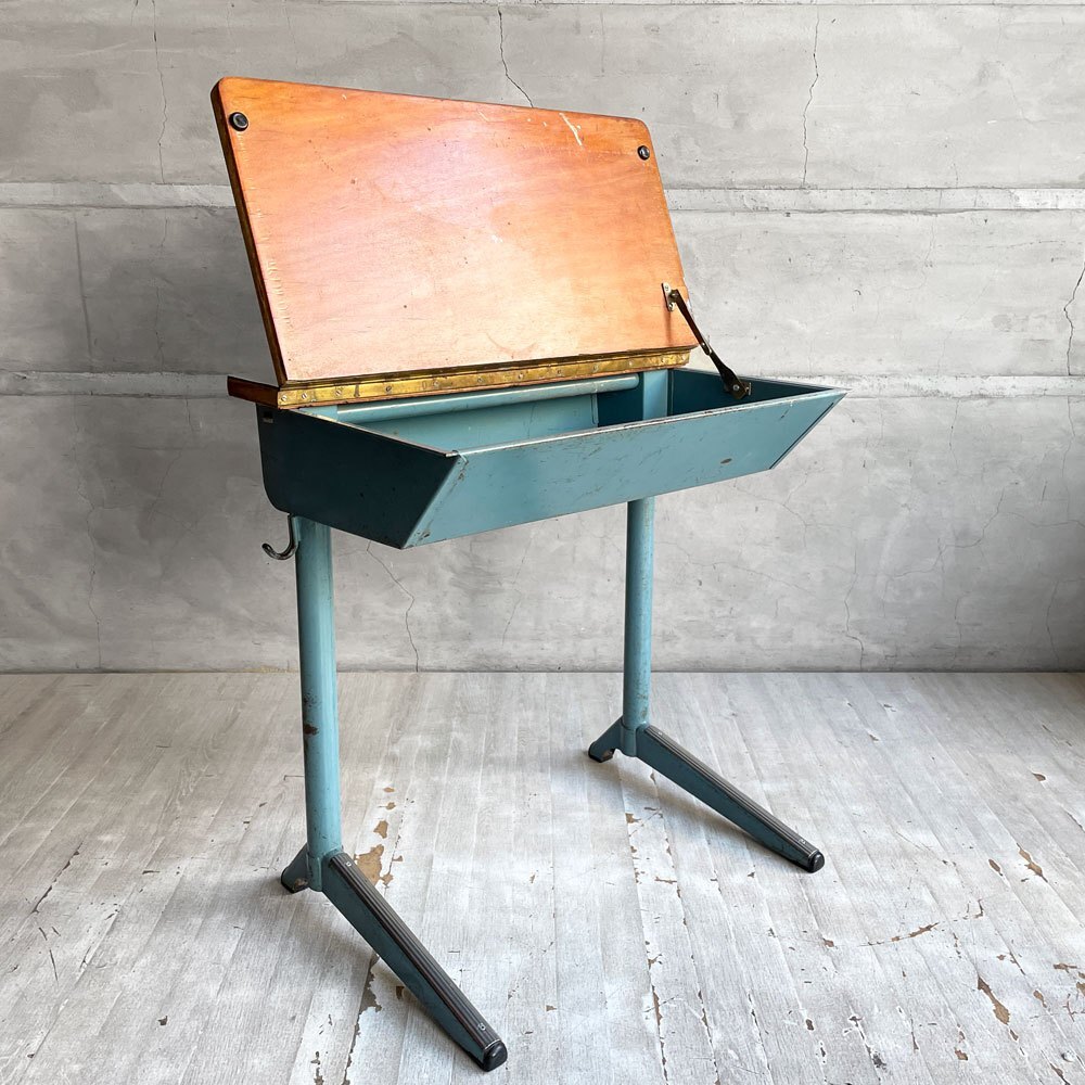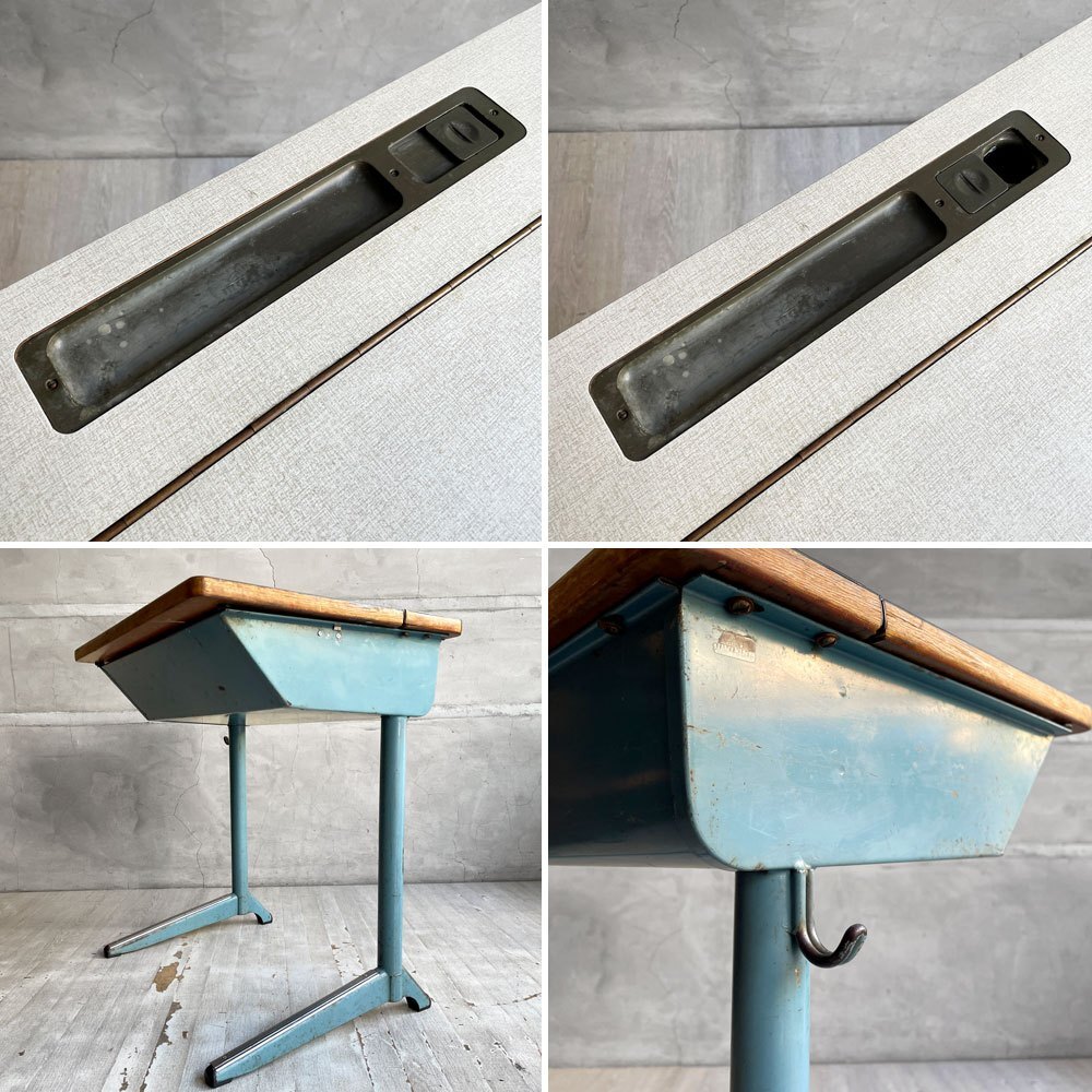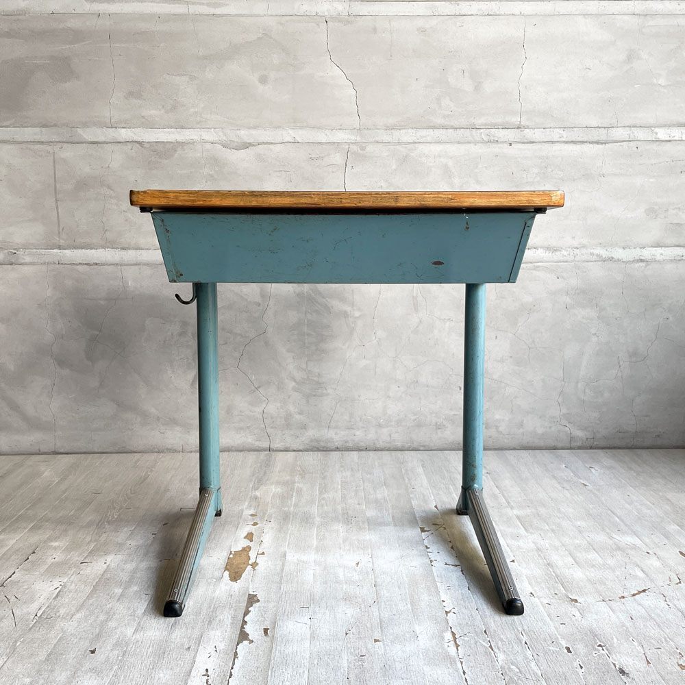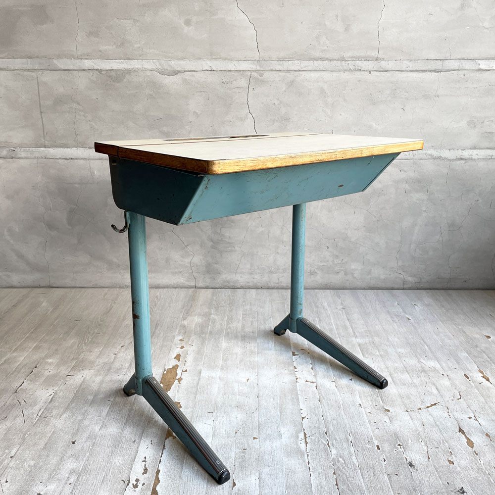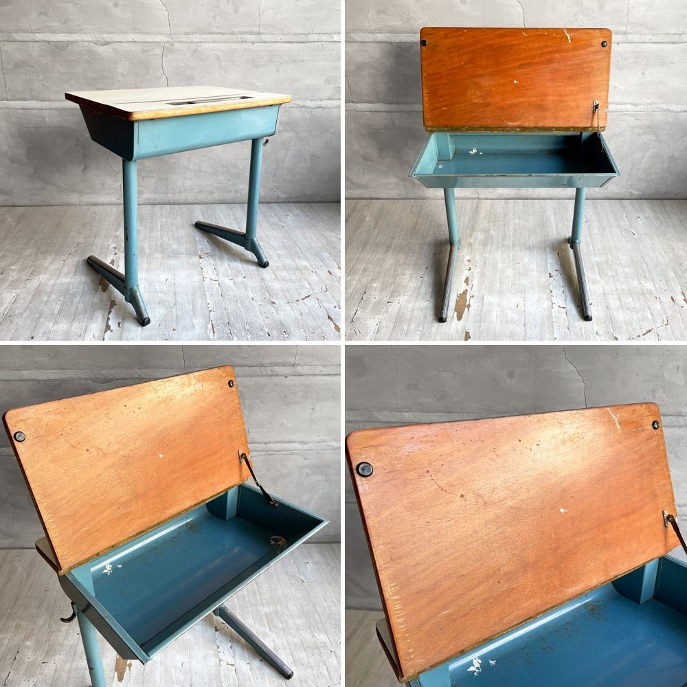 | コメント | 1945年に2兄弟が乳製品工場を改築し設立した"マルコ Marko"社。当時は自転車ペダルを製造していましたが、1950年初頭から家具や学校製品も製造し始めました。 2014年にEromes社と合併し、現在はeromesmarko社として多くの学校製品を手掛けています。 今回はそんな"マルコ Marko"から、ビンテージのスクールデスクが入荷致しました。 小学生ぐらいが使ってたであろう小振りなサイズ感。実用でもオブジェとしてもおすすめなアイテムです。 天板にはスライド式のインク瓶収納が付いており、万年筆やインクで絵を描く方にもオススメです。 また、天板は開閉式になっており、机内に書類や文房具などが収納可能なのでお子様の勉強机にぴったり。 テーブルトップはデコラトップ天板となっており、耐久性や耐水性に優れています。 レトロな風合いが魅力的で独特の風合いを持ちます。 ボディは淡いブルーカラーで、お部屋に溶け込みつつ唯一無二の雰囲気を作ってくれます。 また、経年変化により味わい深くなった風合いは、インダストリアル好きや古学校が好きな方には堪らない仕上がりに。 デスクの左側には荷物を掛けれるフックが付いており、ランドセルや体操着袋などを掛けておく事が出来ます。 脚部は重心が下にあるのでしっかりと安定し、集中して作業に向き合えます。 沢山の子供たちの勉強姿を想像させるスクールデスク。お子様の勉強机として新しい世代へ引継ぐのも素敵な一台です。 ※当ショップは、主にリサイクル品を取り扱っております。基本的にUSED品である事をご理解頂き、ご入札をご検討下さいませ。 |