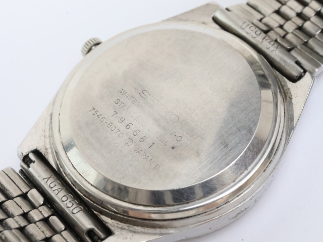 | 2506-618 QZ セイコー タイプII 7546 8070 クオーツ 腕時計 SEIKO デイデイト 白文字盤 シルバーカラー 純正ブレス | |||||||