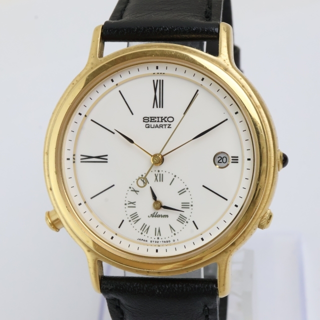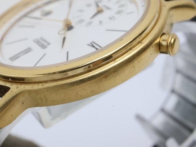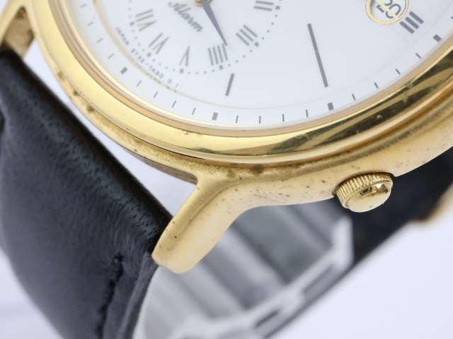 2509-626 QZ セイコー デュアルアラーム 5T32 7A40 SEIKO 日付 アラーム 白文字盤 ゴールドカラー | |||||||