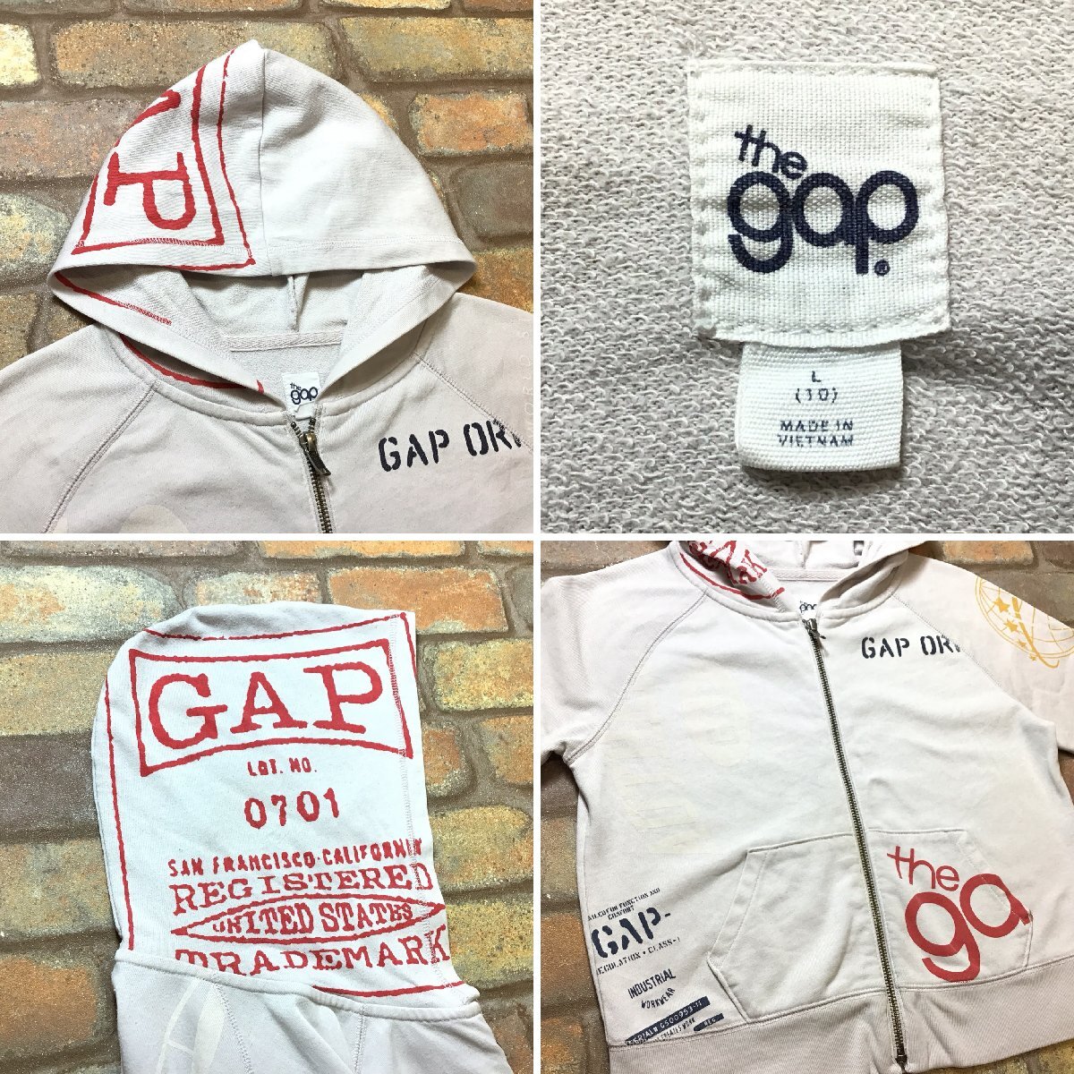 合計落札金額¥8,000円以上で、、、 送料無料!! ※こちらからの[合計支払い金額通知]をご確認の上、お支払い下さい♪ -------------------------------- 【 gap ギャップ 】 総柄 ジップアップ スウェットパーカー ● USA輸入・正規品 ● ● 海外サイズ規格 ● -------------------------------------------------------- ・フード・左袖に小穴有り。 ・両袖にヨゴレ有り。 総柄デザインの存在感抜群なお薦めの1着です◎ ------------------------------------------------------ ◆ サイズ ◆ ボーイズ L 10 ※下記実寸のご確認をお願いいたします。 ◆ 実寸◆ 肩幅:--cm 身幅:44cm(両脇下間を計測) 着丈:45cm(背面襟元~裾を計測) 袖丈:64cm(ラグラン袖の為、袖先から首元を計測) 素人採寸の為、多少の誤差はお許しください。 -------------------------------------------------------- ◆ 素材表記 ◆ 素材表記タグ欠損により不明。 ※おそらくコットンだと思われます。 -------------------------------------------------------- | |||||