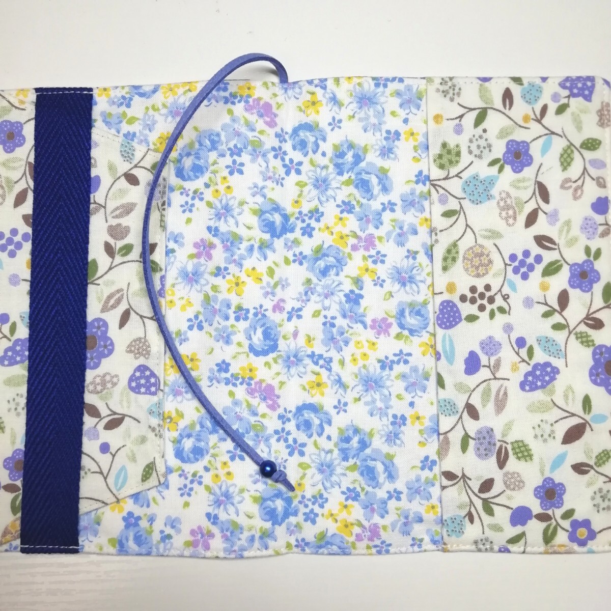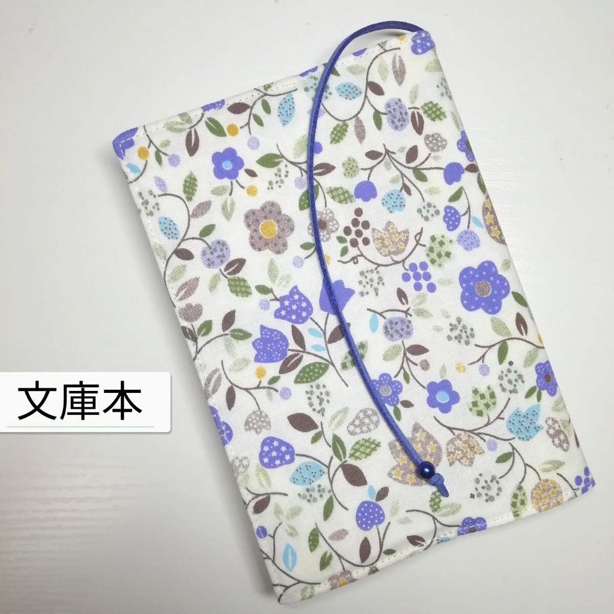こちらはハンドメイドのブックカバーです。サイズは文庫本用で、広げた状態で、縦約16、横約30です。
