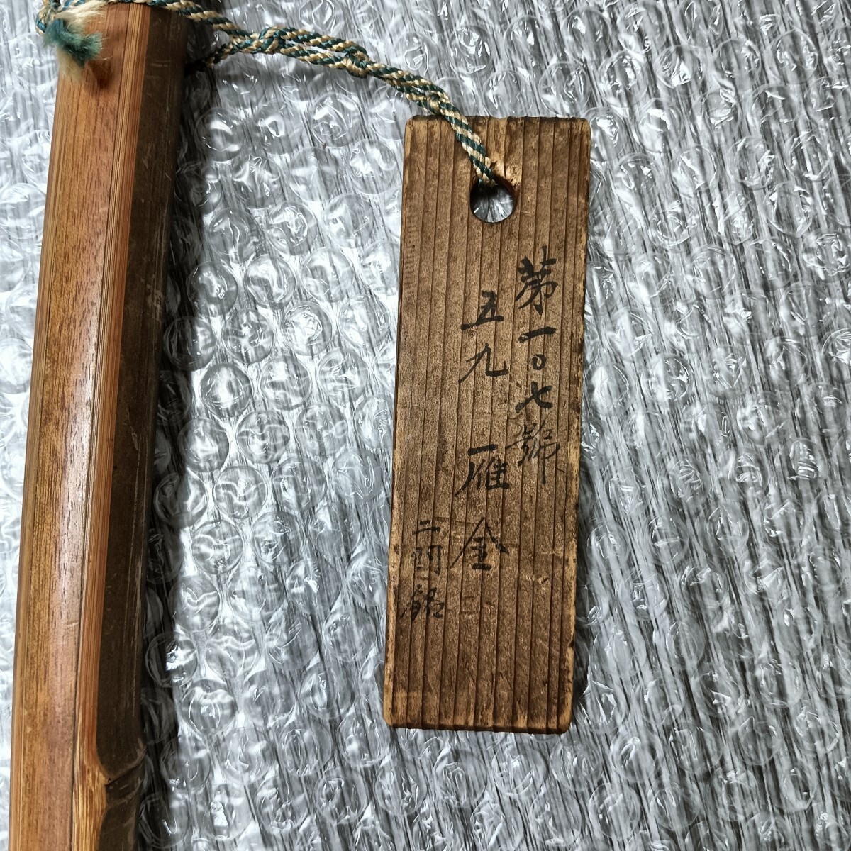 【A4066】江戸時代?弓道具 雁金 徳川公爵ヨリ拜領 竹弓 和弓 弓具 武具 現状品 骨董品 アンティーク 長さ約213cm 弓カ不明 重さ約600g