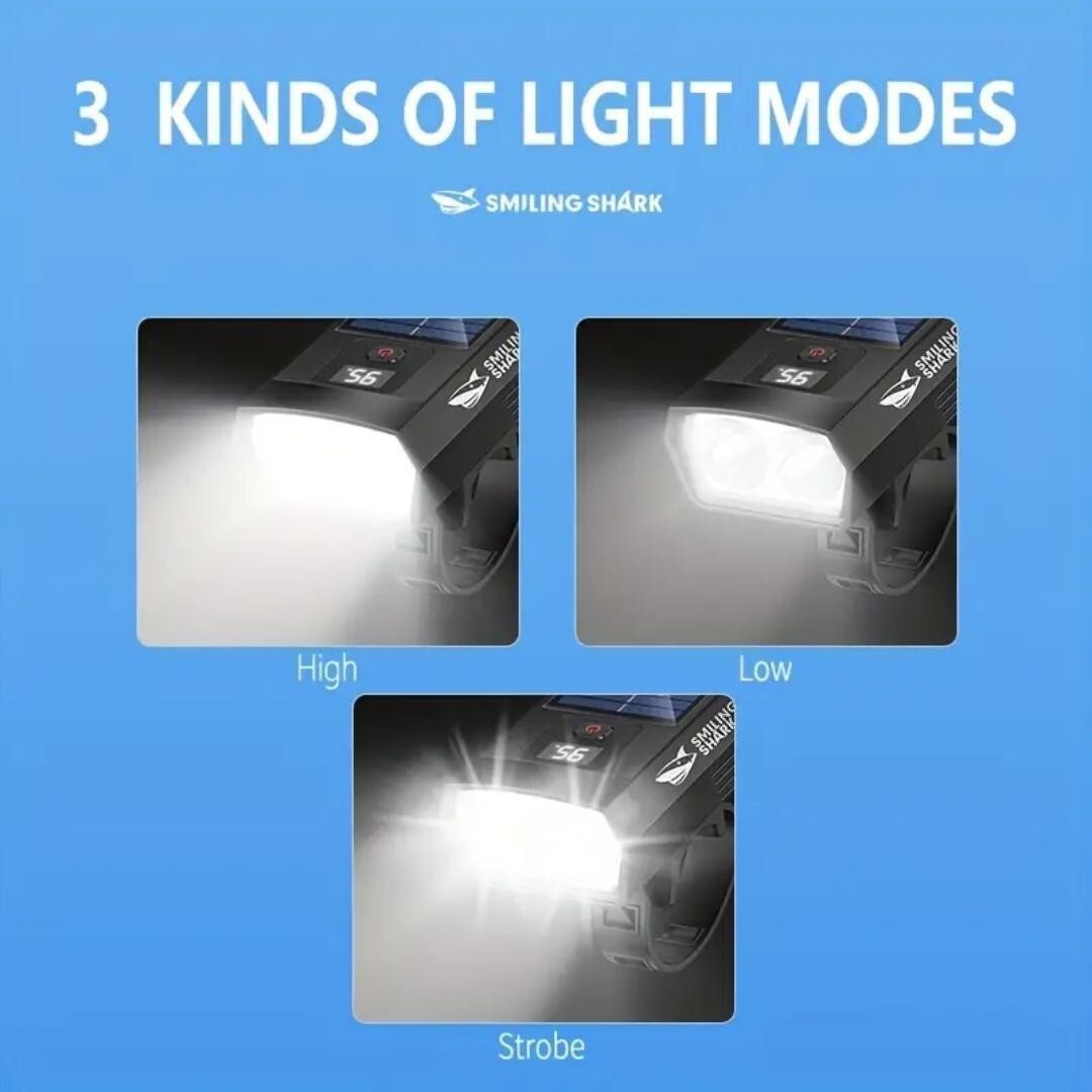 ●点灯モードは強・弱・点滅の3パターン。道路状況に応じて使い分けが可能です。