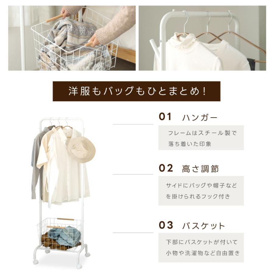ハンガーラック バスケット付きハンガー スリム 収納 コート掛け 棚付き キャスター付き 玄関収納 組立簡単 zk-rb05-170-wh