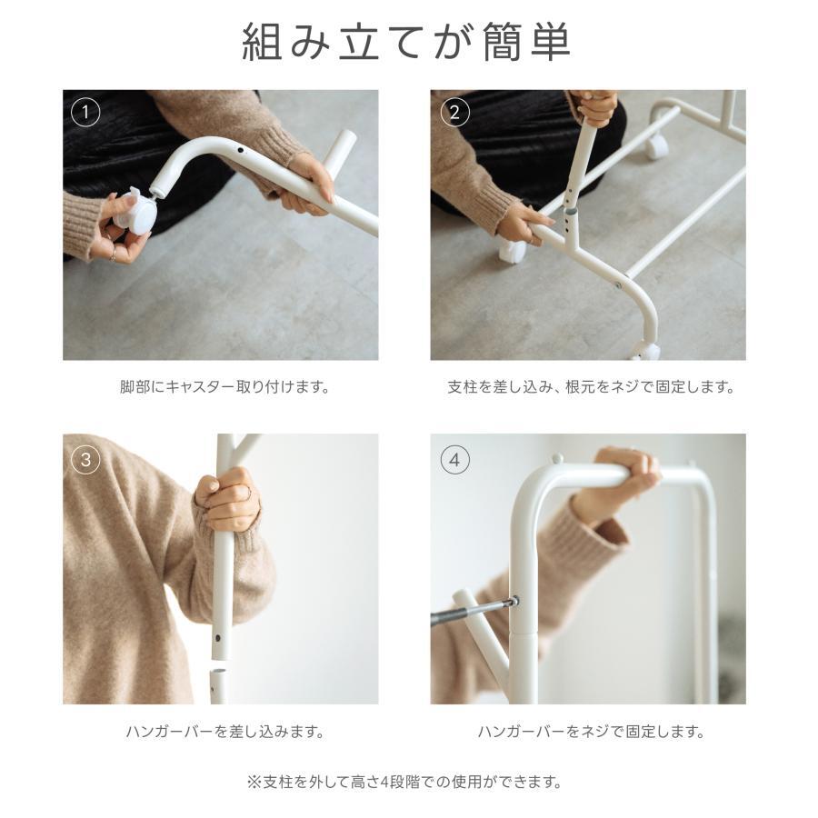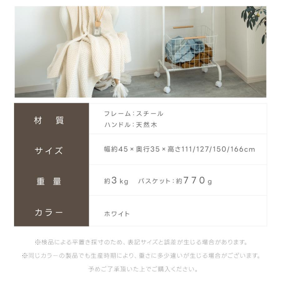 商品サイズ:約幅45×奥行35×高さ111/127/150/166cm / カラー:ホワイト / 材質:スチール(フレーム)、天然木(ハンドル) / 重量:約3kg(本体)、約770g(バスケット)