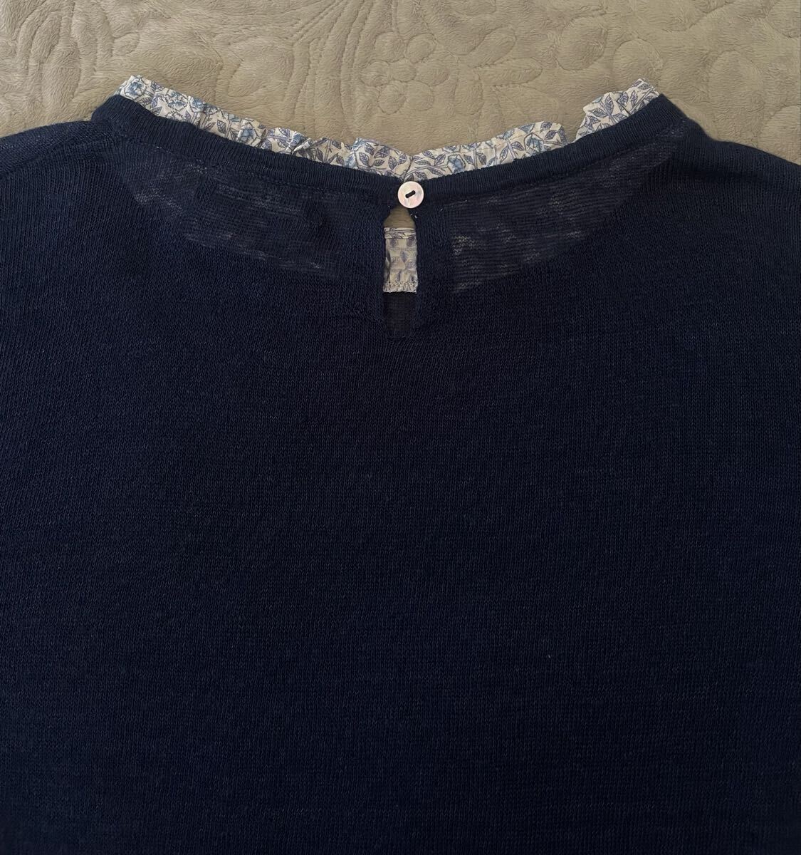 麻のナチュラル感や花柄のフリルがとても可愛くて上品です♪