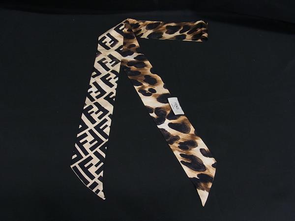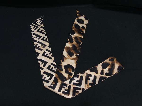 1円 FENDI フェンディ ラッピー ズッカ柄 ツイリー リボンスカーフ レディース ブラウン系×ブラック系 FP6422