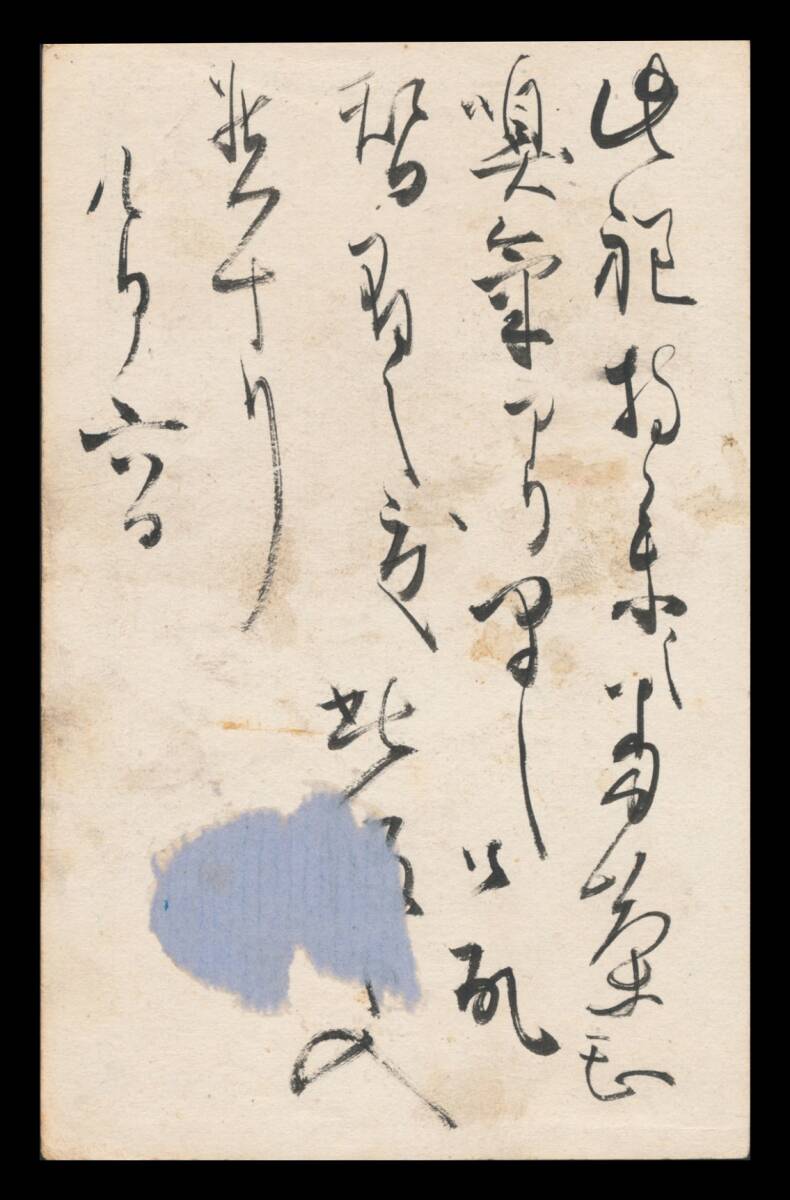 ●東京支局大型ボタ印|小判1銭紙幣寮銘葉書 二重丸型印:新橋/東京・一八・八・六・ヲ 裏紙片付着 エンタイア