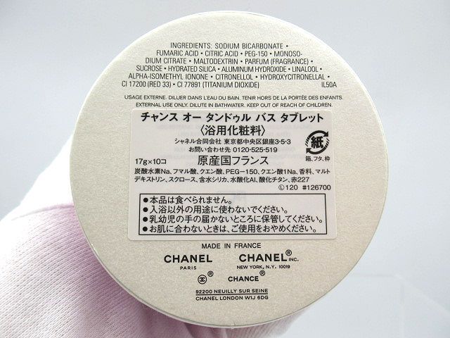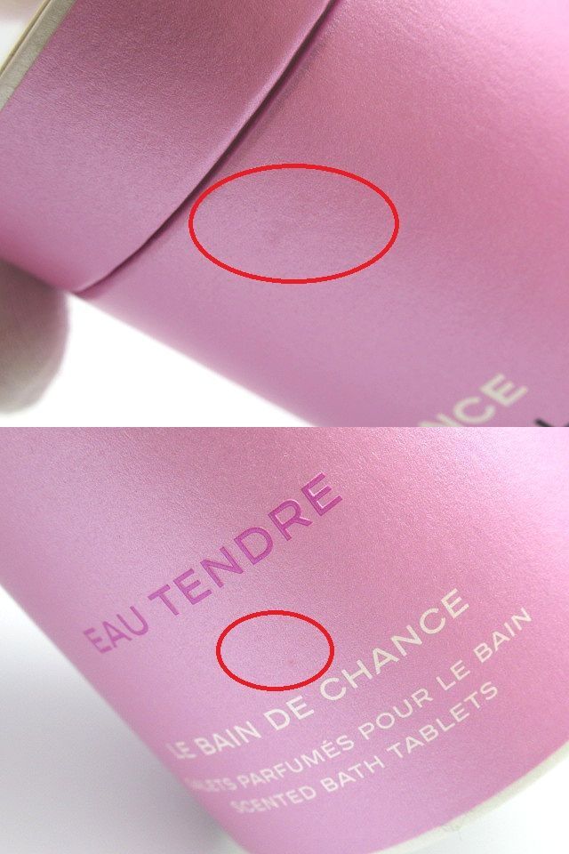 ◇CHANEL◇シャネル◇ CHANCE EAU TENDRE チャンス オータンドゥル バス タブレット 浴用化粧料 バスボム 入浴剤 未開封 管理番号:35385/S3 *付属品* 無し ※画像に無いものはお付けしません。 *内容量* ・17g×10コ 【状態】 店舗買取品/保管品/未開封になります。 長期保管品の為、香りの変化・成分変化等のダメージがある場合があります。 未開封品の為、中の状態の確認は行っておりません。 現状渡しとなりますので、 内容にご理解いただける方のみご入札をお願い致します。 箱に汚れ・傷等のダメージがあります。 詳しい状態は写真でご確認下さい。 ※商品の状態の説明はあくまで出品者の主観に基づいた説明です。 ※店舗保管品です。 ※新品の様な完璧な状態では御座いません。 ※ご理解頂ける方のご入札をお願い致します。 ご入札前に必ず全文をお読みになり、 お客様が十分にご納得された上でのご入札、 ノークレーム・ノーリターンでお願い致します。 入札の取消は行っておりませんのでご注意下さい。 (ご入札された時点で同意頂いたものとします) ※画像のものがすべてになります。 ※店舗保管品の為、多少のスレキズ等ある場合が御座います。 ※専門知識が無いため質問にお答えできない場合が御座います。 ※素人検品・撮影の為写真に写り切らない汚れ・キズがある場合が御座います。 ※新品の様な100%完璧な状態では御座いません。 ※念入りに検品しておりますが見落としがある場合が御座います。 ※神経質な方、完璧をお求めの方は入札をお控え下さい。 ※御理解頂ける方のご入札をお願い致します。 ※当店はまとめてお取引には対応致しません。 全て単品でのお取引となります。 ※同梱は行っておりません。 ※商品管理上、取り置きは致しませんのでご了承下さい。 | |||