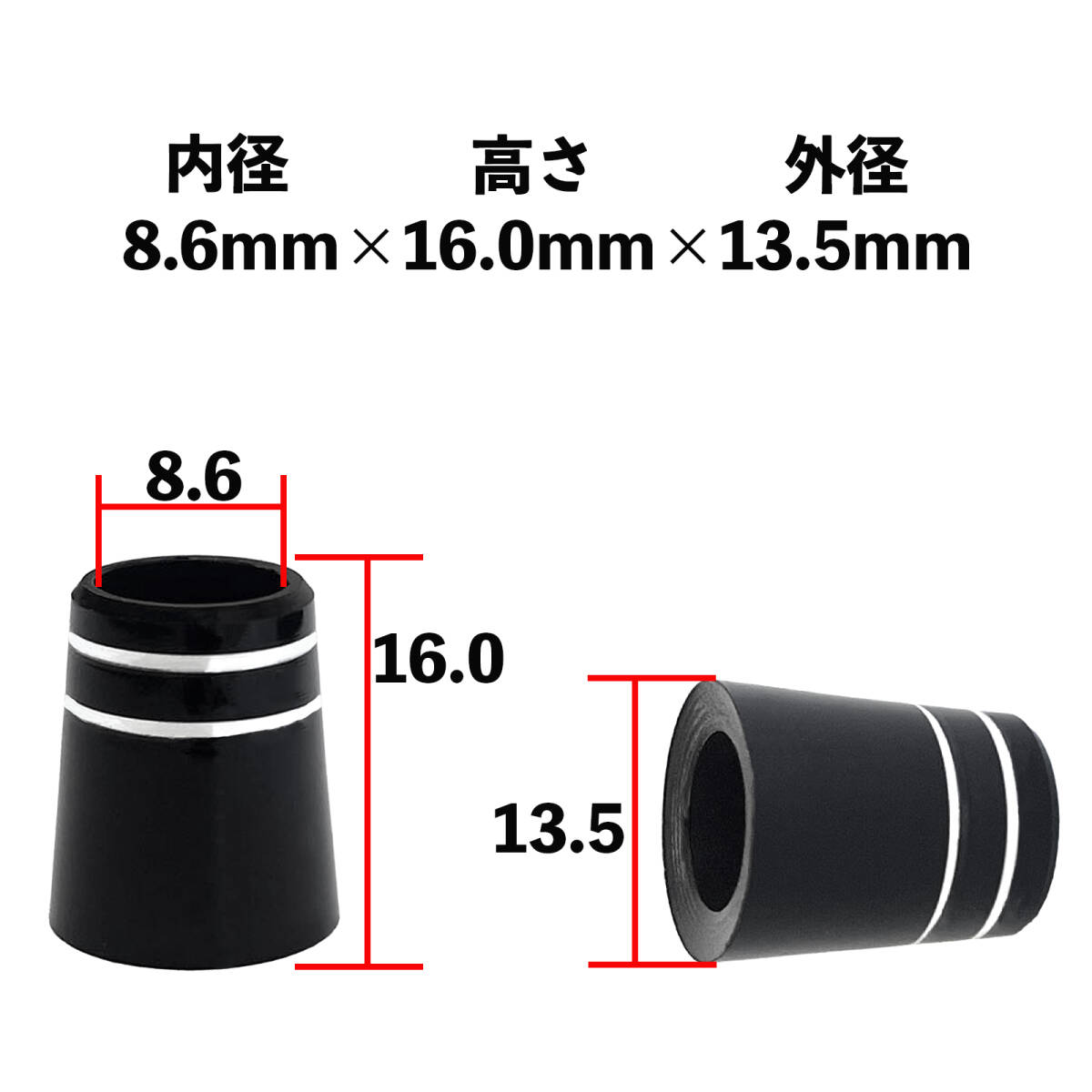 内径約8.6mm*高さ約16.0mm*外径約13.5mm