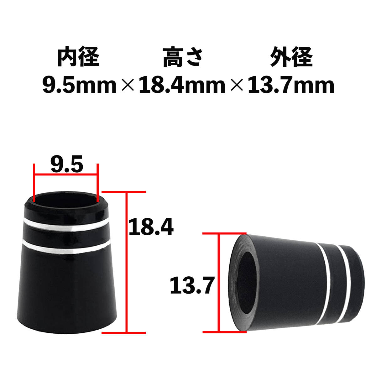 内径約9.5mm*高さ約18.4mm*外径約13.7mm