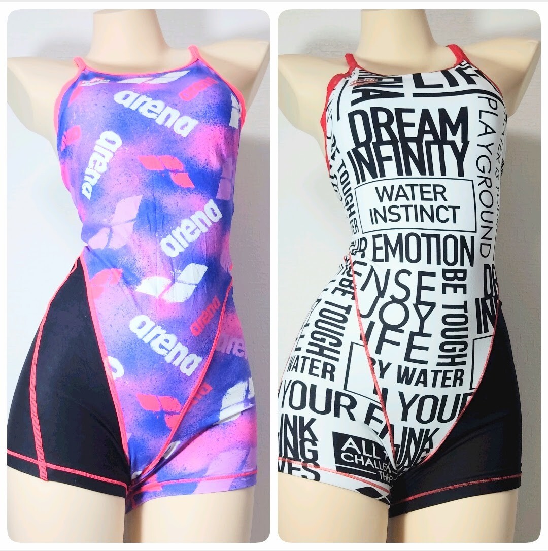 1【2枚セット】アリーナarena女子競泳水着(M9・L11)★FSA-2635W・SAR-7122Wタフスーツ★フライバック光沢ブラック白ピンク紫★伸縮性あり