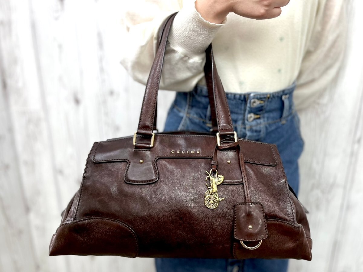 極美品 CELINE セリーヌ ハンドバッグ ショルダーバッグ バッグ レザー 茶 90129 | ||