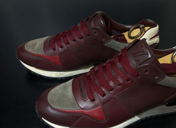 ヴィトン 6.5 LOUIS VUITTON ♯GO0144 ダミエ ランウェイレザースニーカー バーガンディ