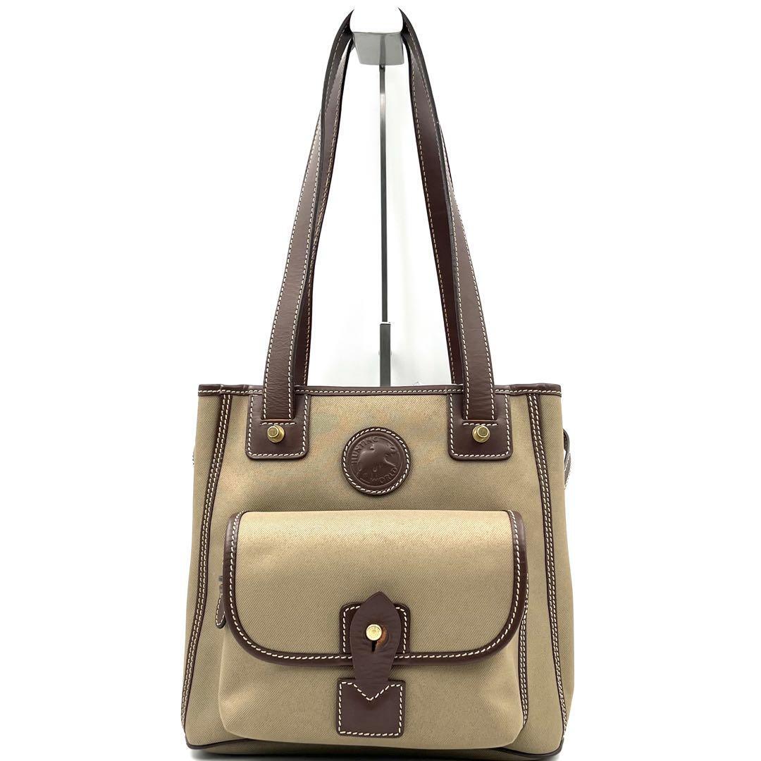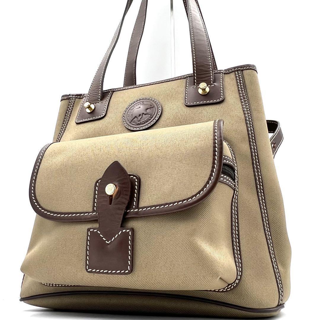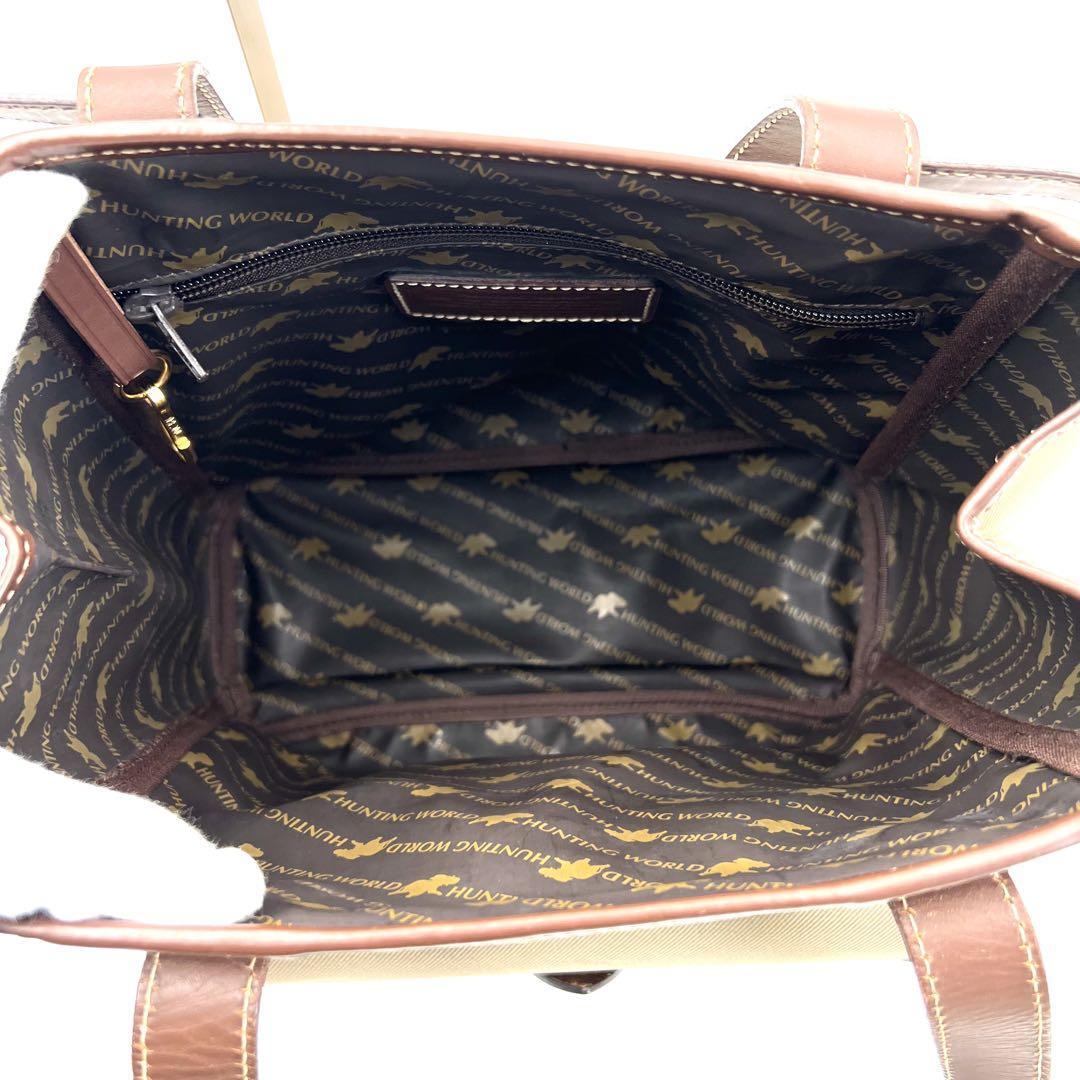 《美品》HUNTING WORLD ハンティングワールド サファリ メンズ ビジネス レザー キャンバス トートバッグ 肩掛け