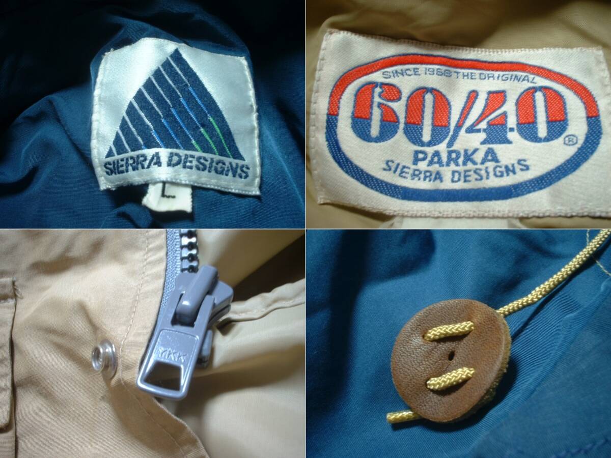80sビンテージSIERRA DESIGNS 60/40クロスマウンテンパーカーL三角タグ正規シエラデザインフーデッドナイロンジャケットチノカーキベージュ