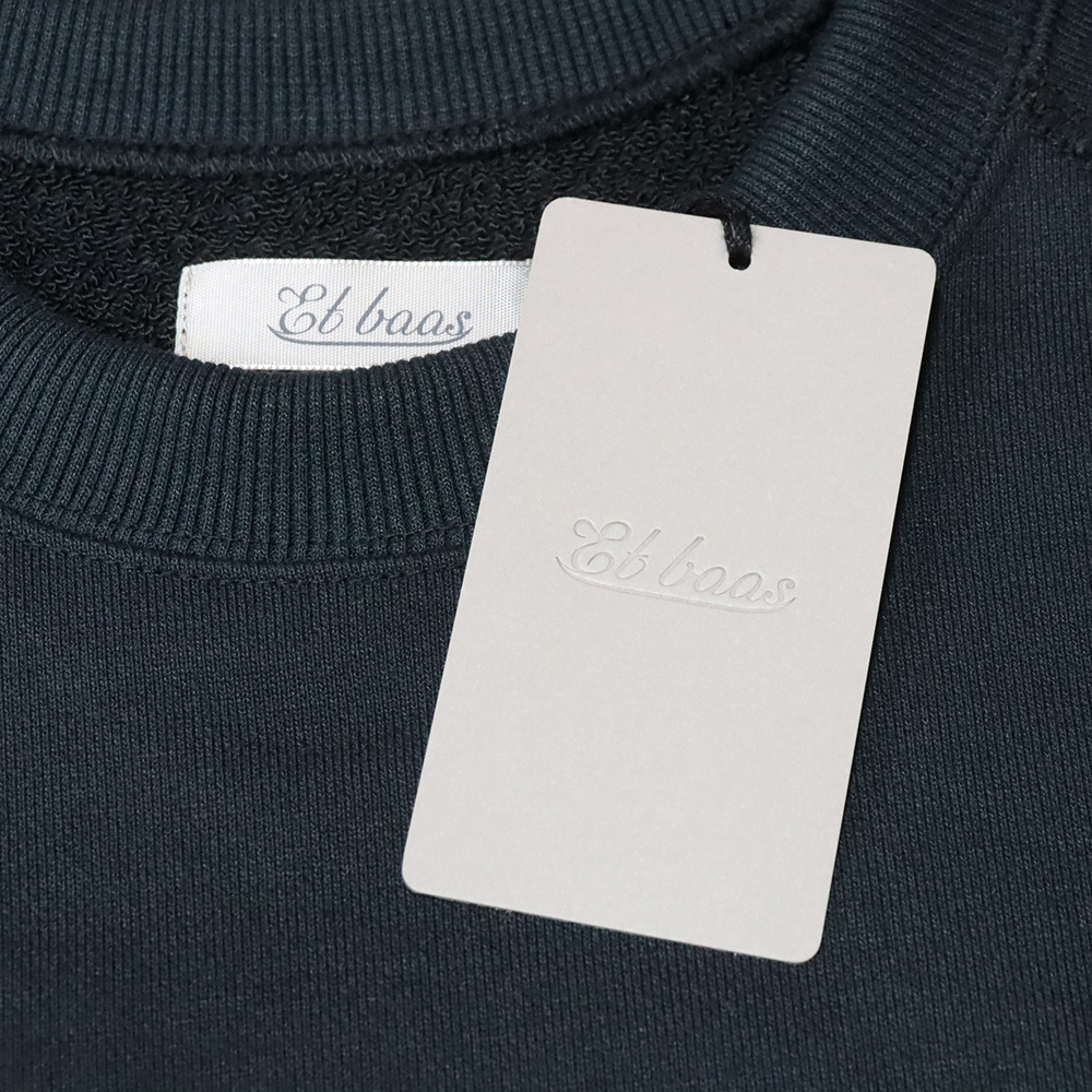 ゆったりめのシルエットで仕上げた絶妙なサイズバランスが魅力のクルーネックプルオーバー。程よい厚みでとても柔らかな風合いの裏毛スウェット素材を使用しています。イージーケアで着用後もシワにもなりにくく、伸びやダレも少なく、毛玉の発生も防ぎます。ポケットの内側と左裾リブの裏側にEt baasロゴモノグラムのメガネ拭き生地をあしらい、メガネやスマートフォンの汚れをサッと落とせるユニークなデザインとなっています。