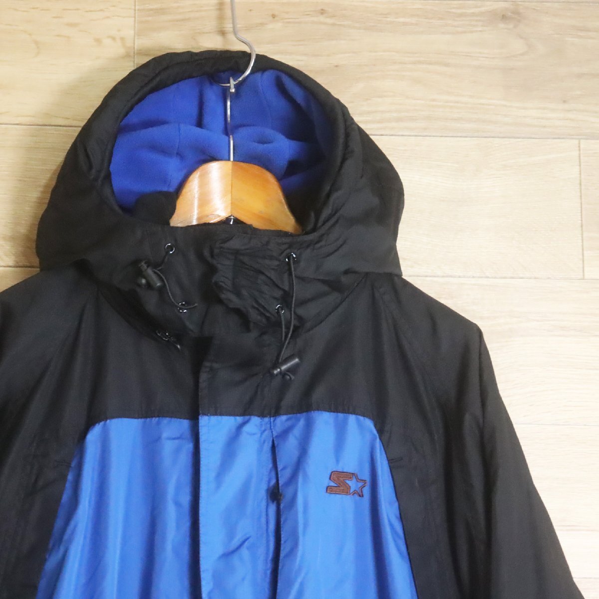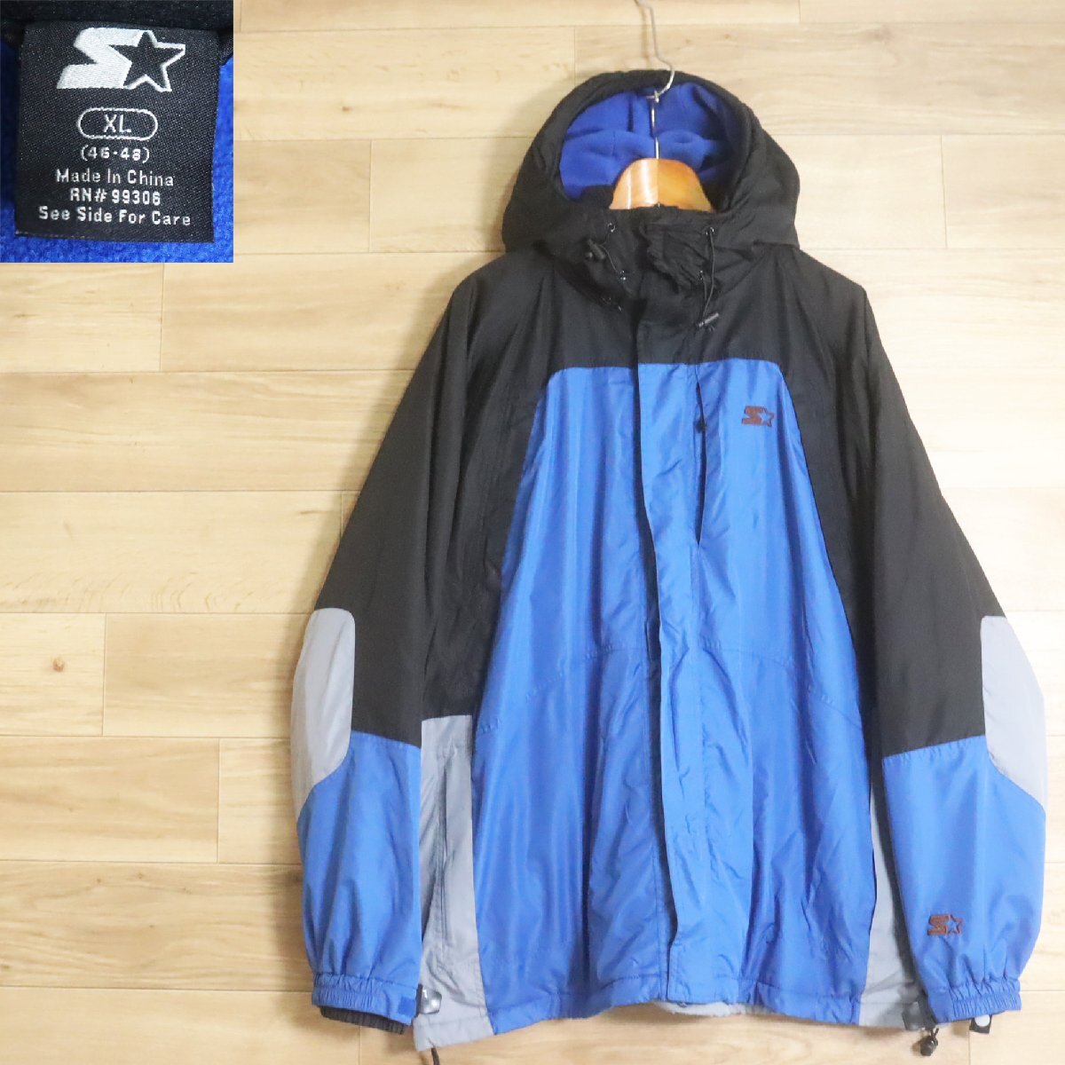K1R/R8.4-6 STARTER スターター マウンテンパーカー ナイロンジャケット アウトドア 裏フリース XL 刺繍 メンズ ブルー系