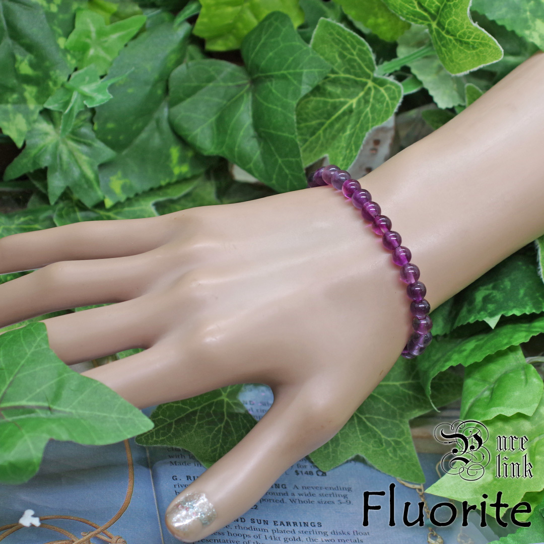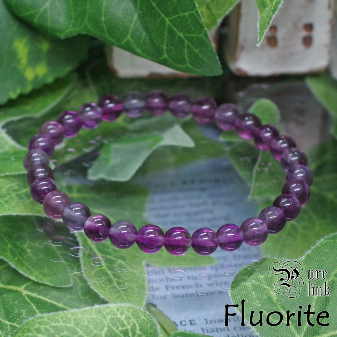 ?魂を浄化する紫の癒し?『パープルフローライト』6mmブレスレット