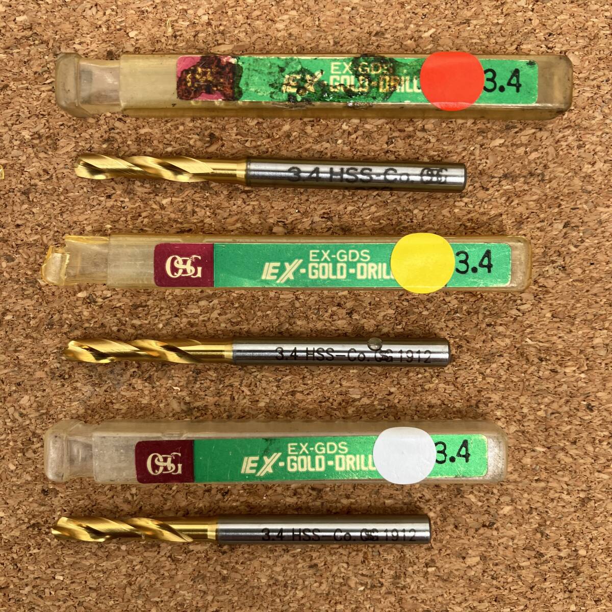 1円スタート 送料180円 ハイス ドリル エンドミル 3本セット OSG EX-GDS Φ3.4 未使用 ジャンク品