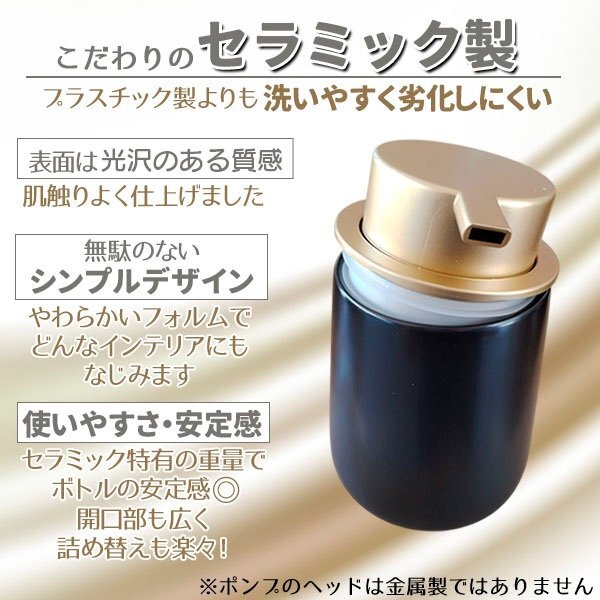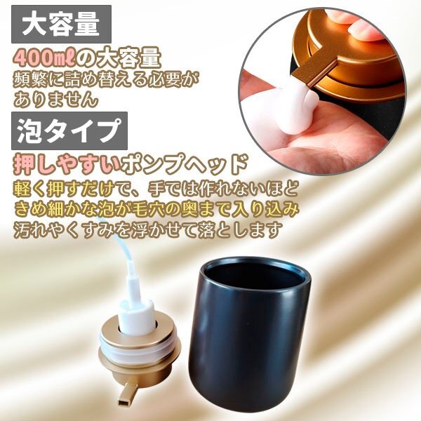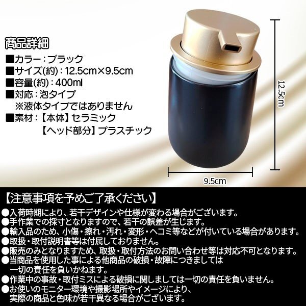 泡 ソープディスペンサー 詰め替えボトル セラミック ブラック 黒 詰め替え 400ml ソープボトル ポンプボトル ハンドソープ シンプル